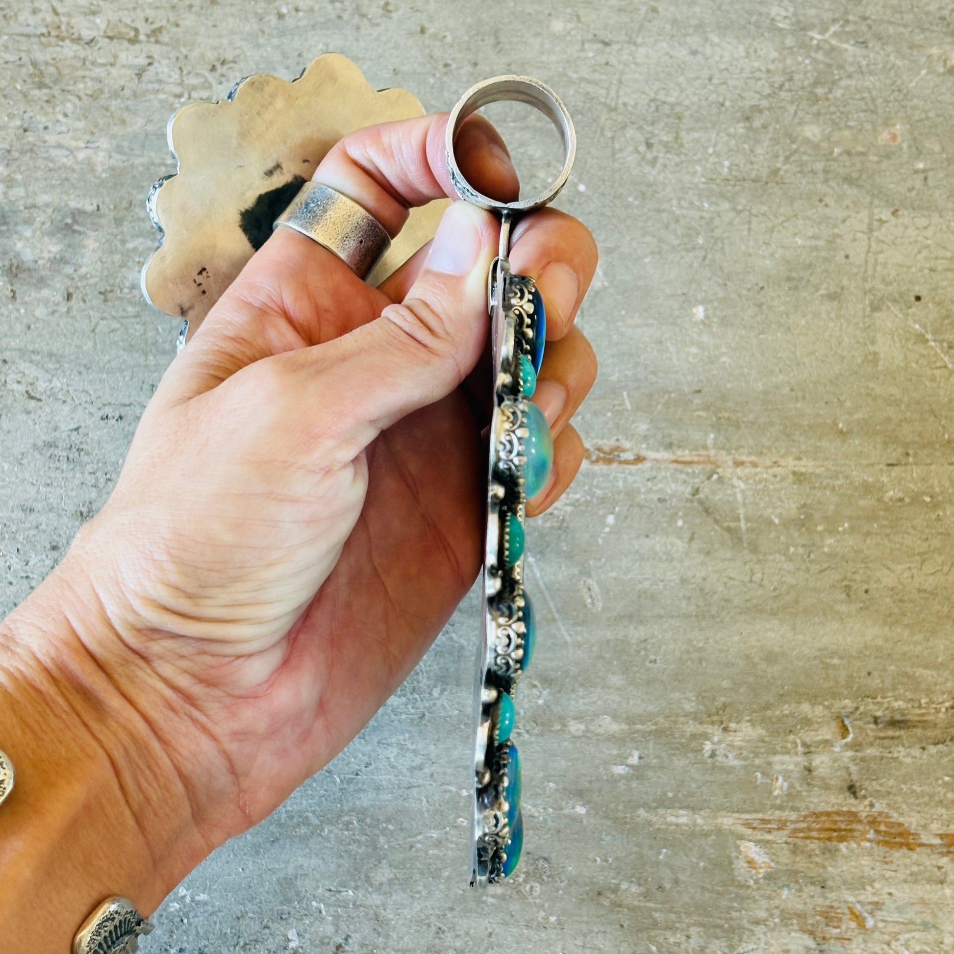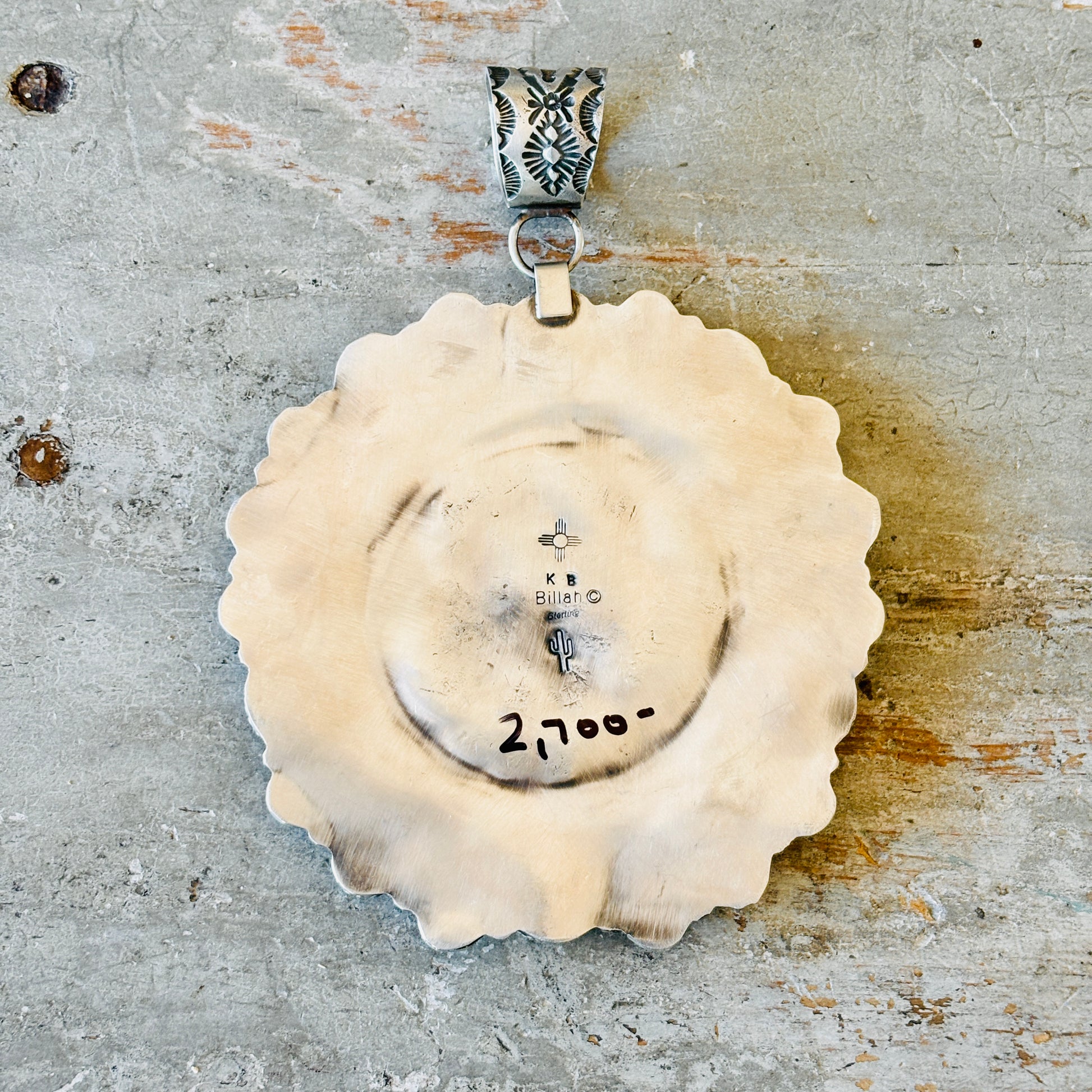 Navajo Kindale Billah Sterling Silver - Dichroic Glass & Campitos Turquoise Feathers Pendant