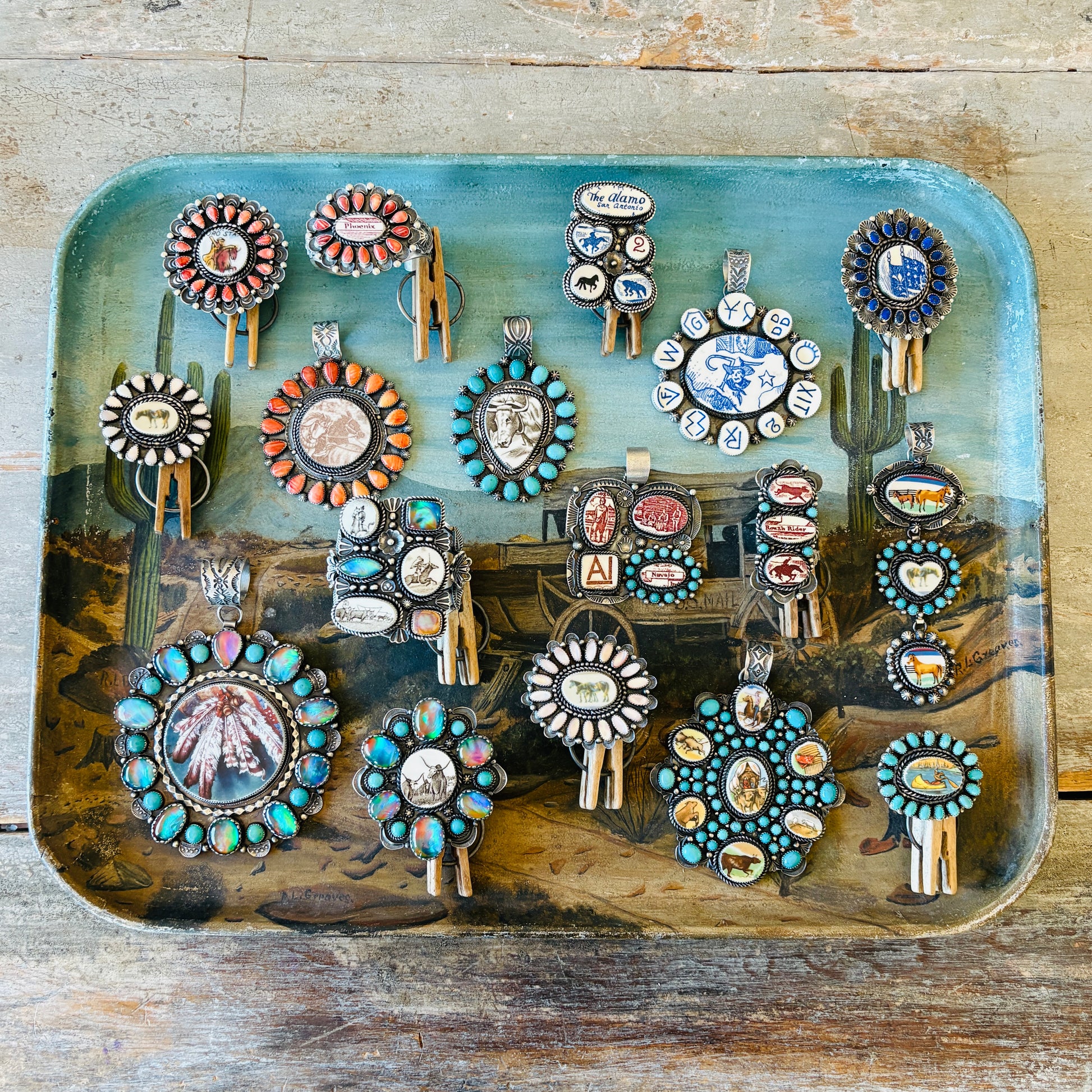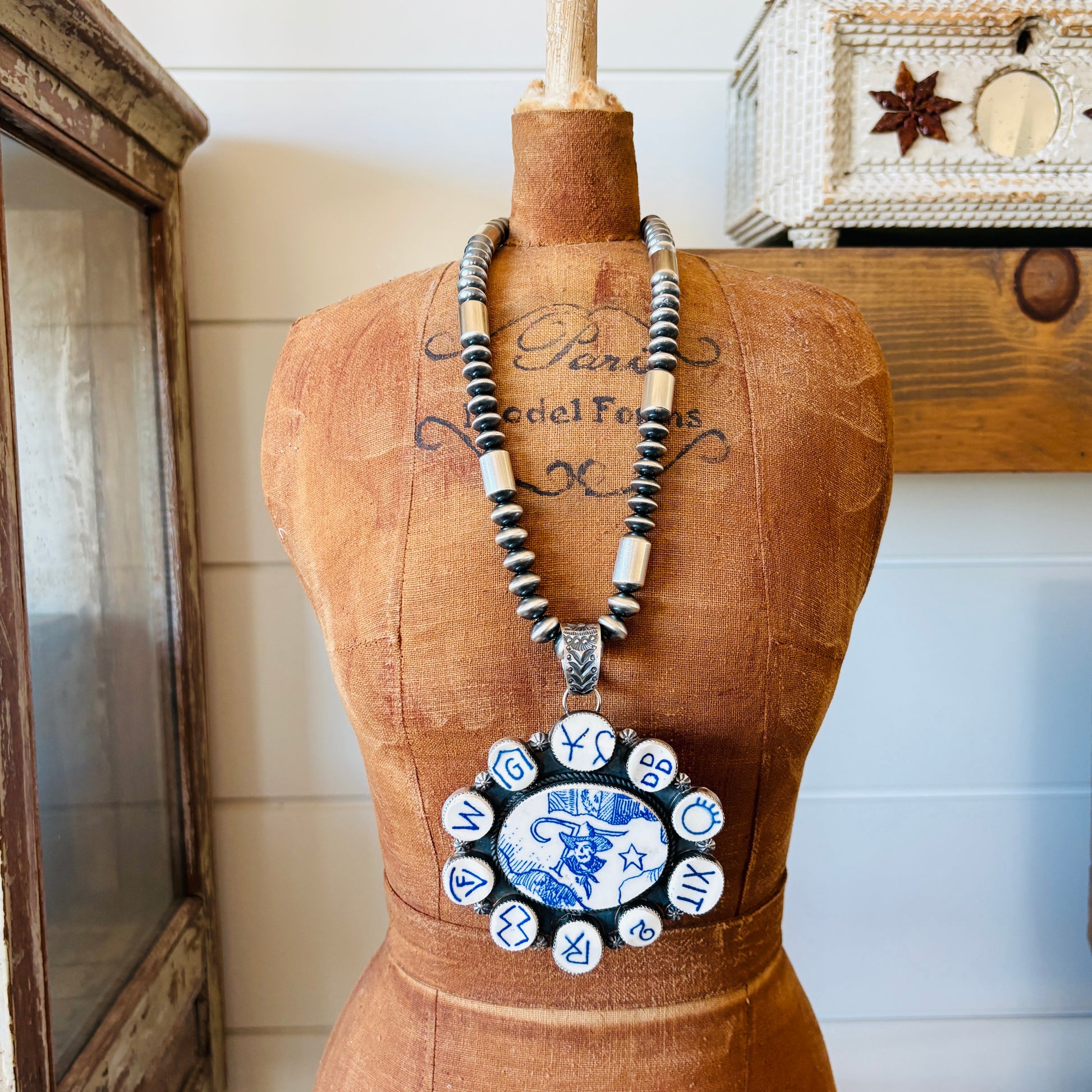 Navajo Kindale Billah Sterling Silver Will Rodgers & Cattle Brands Pendant