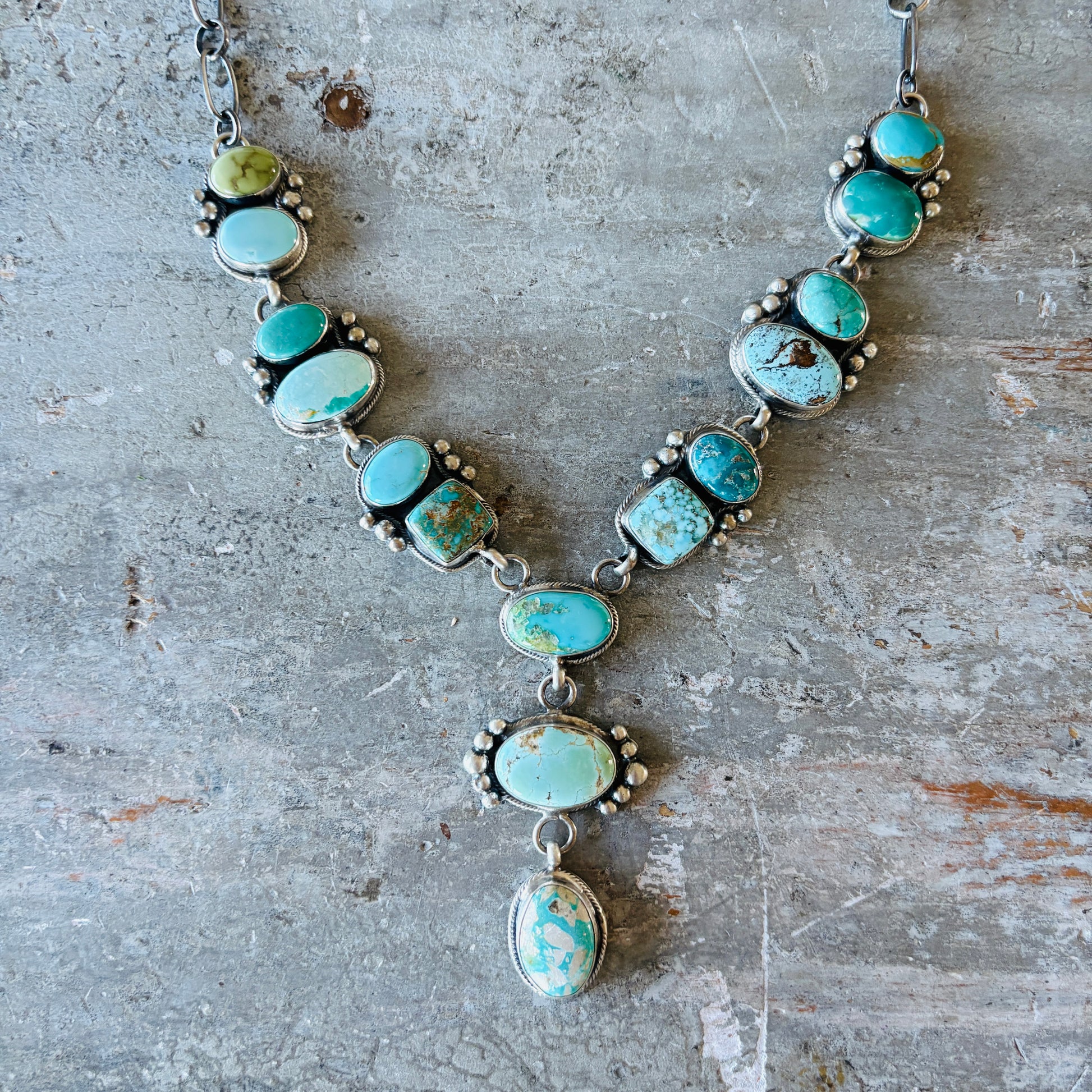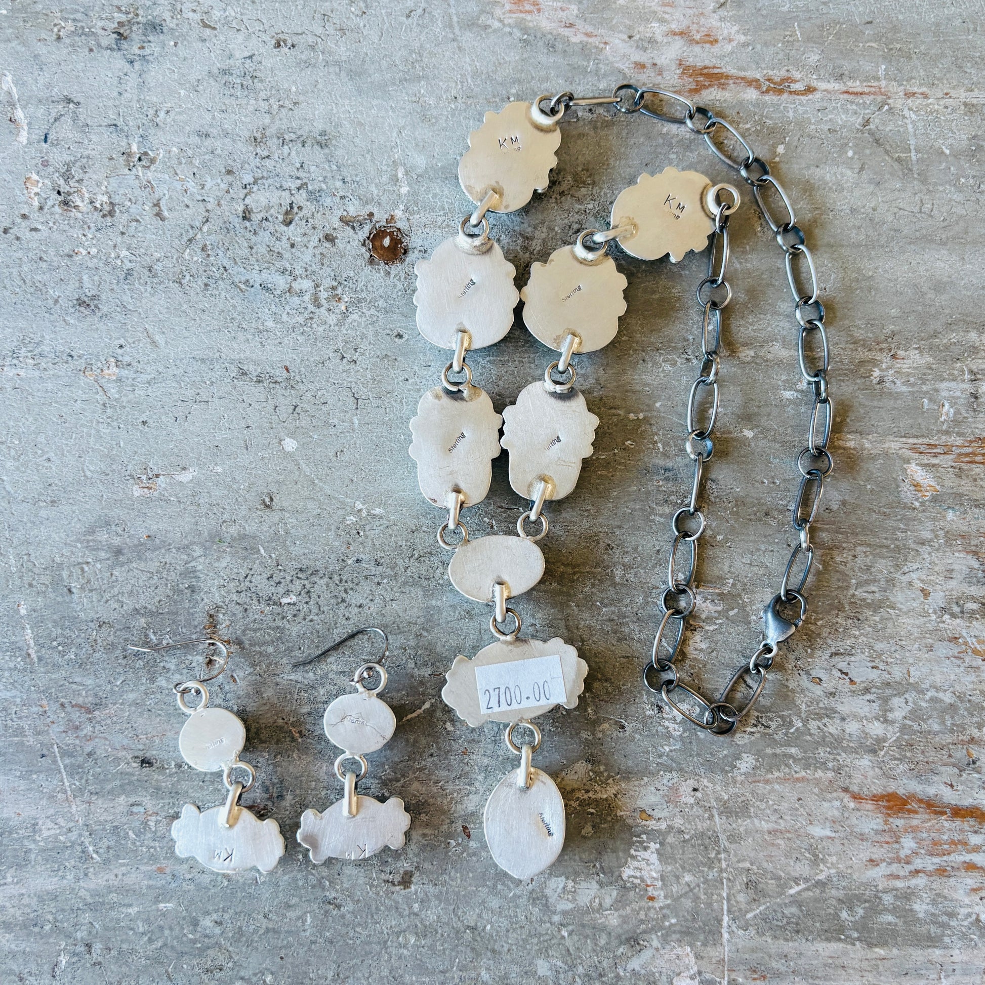 Navajo Kobe Martinez Sterling Silver & Mixed Turquoise Statement Necklace Set