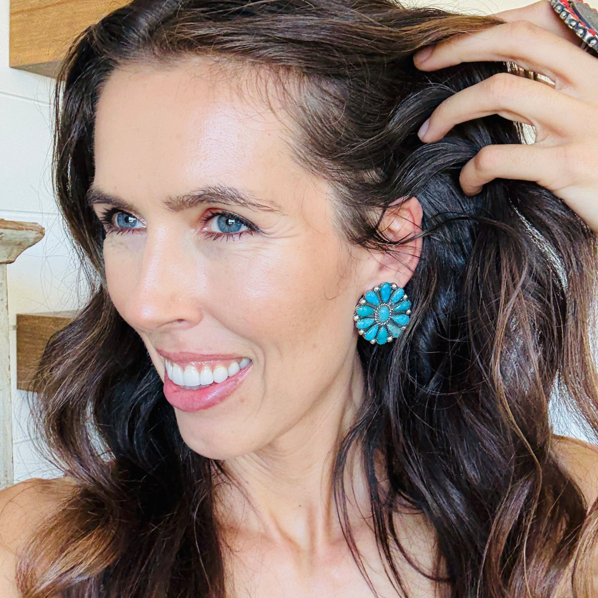 Navajo Lorenzo & Jerilyn Chee Sterling Silver & Kingman Cluster Earrings