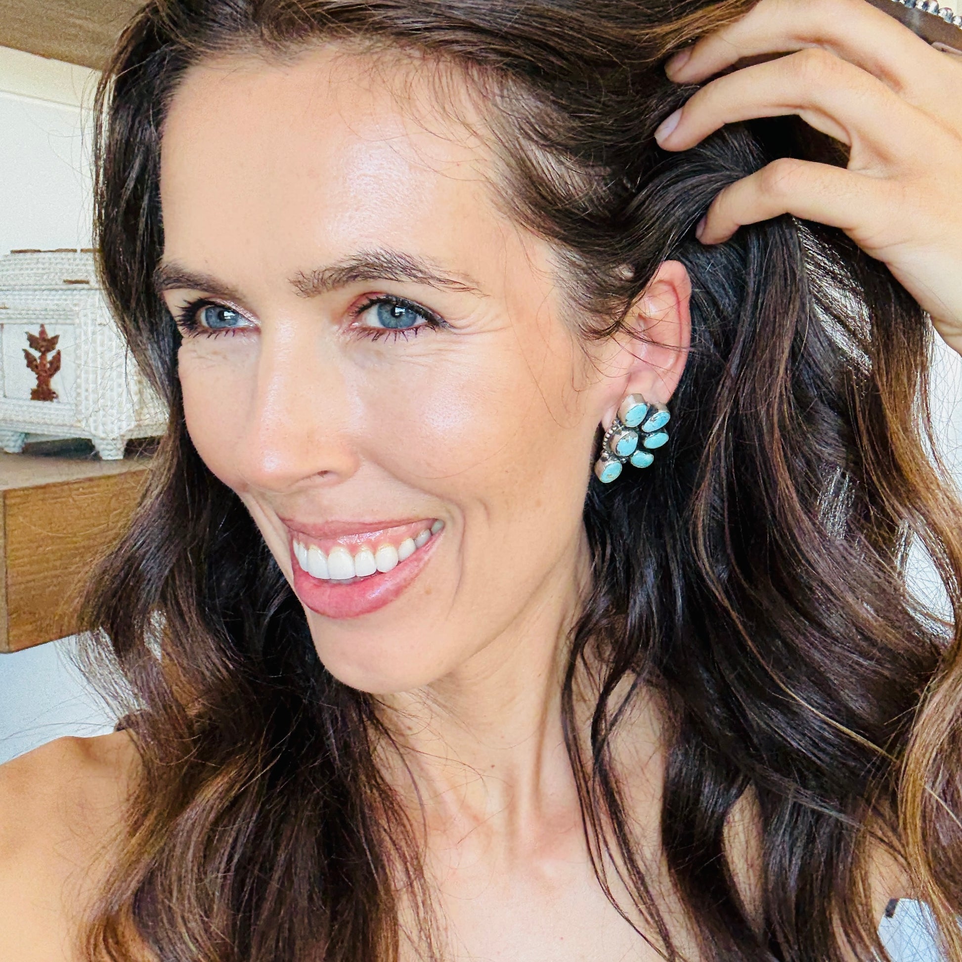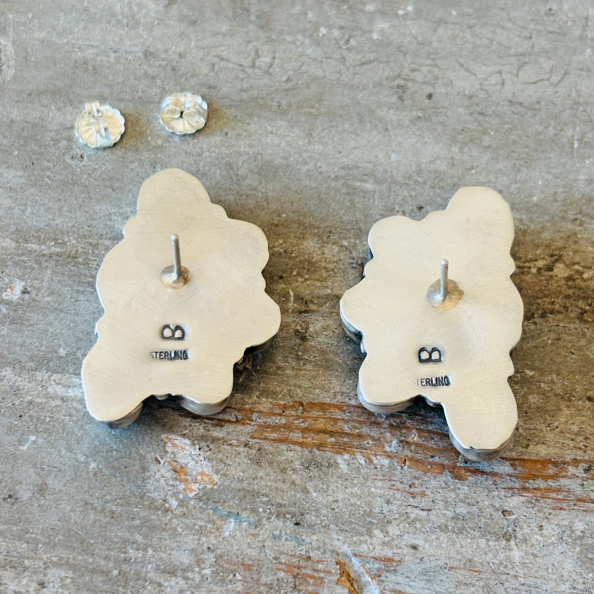 Navajo Lydia Begay Sterling Silver & Kingman Cluster Earrings