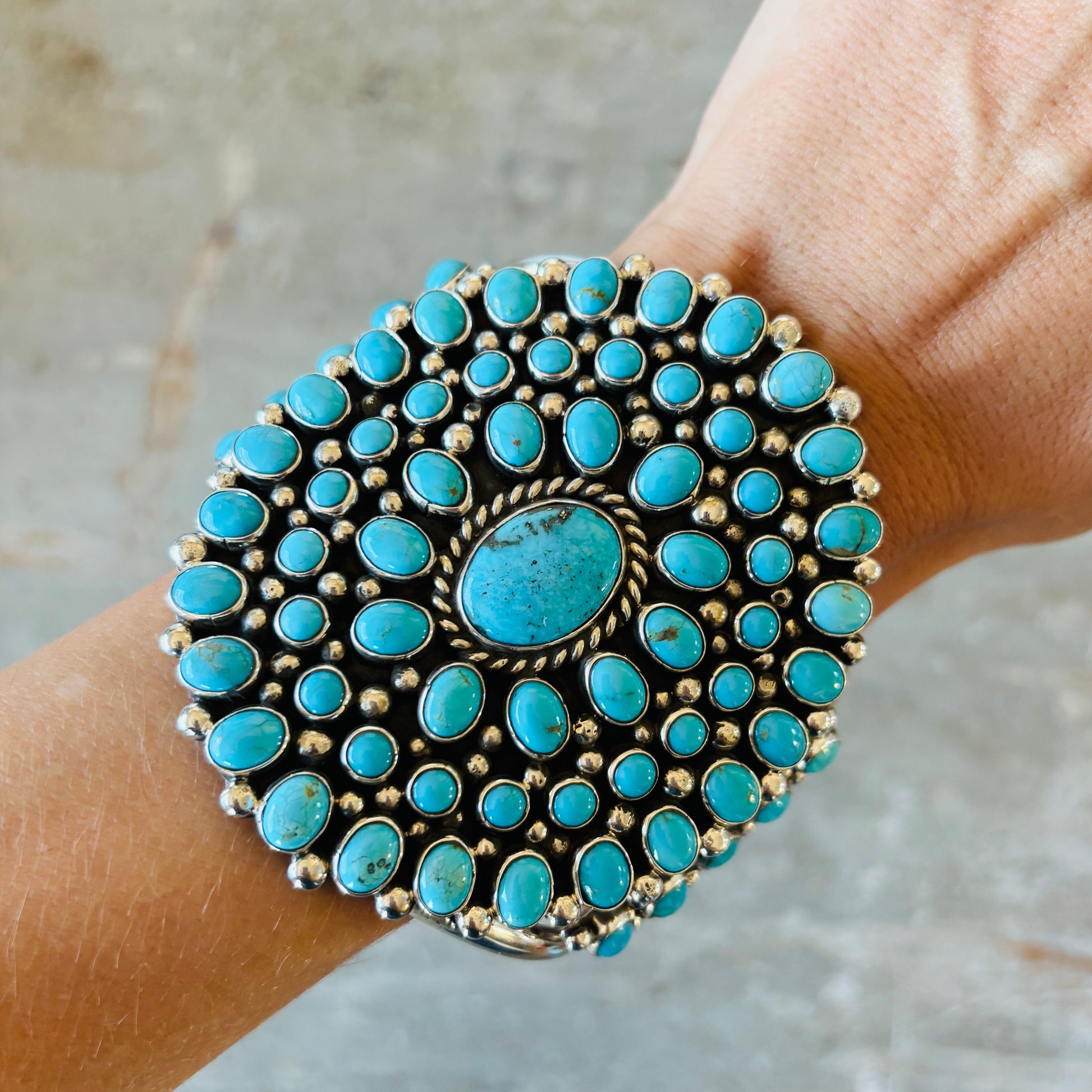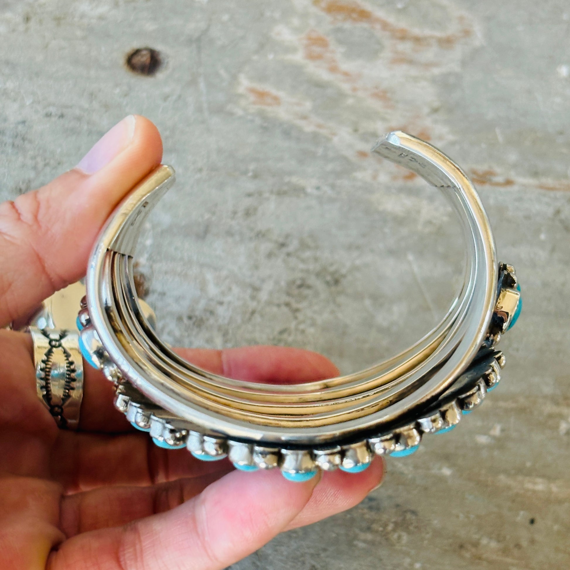 Navajo Melvin & Tiffany Jones Sterling Silver & Kingman Turquoise Cluster Cuff