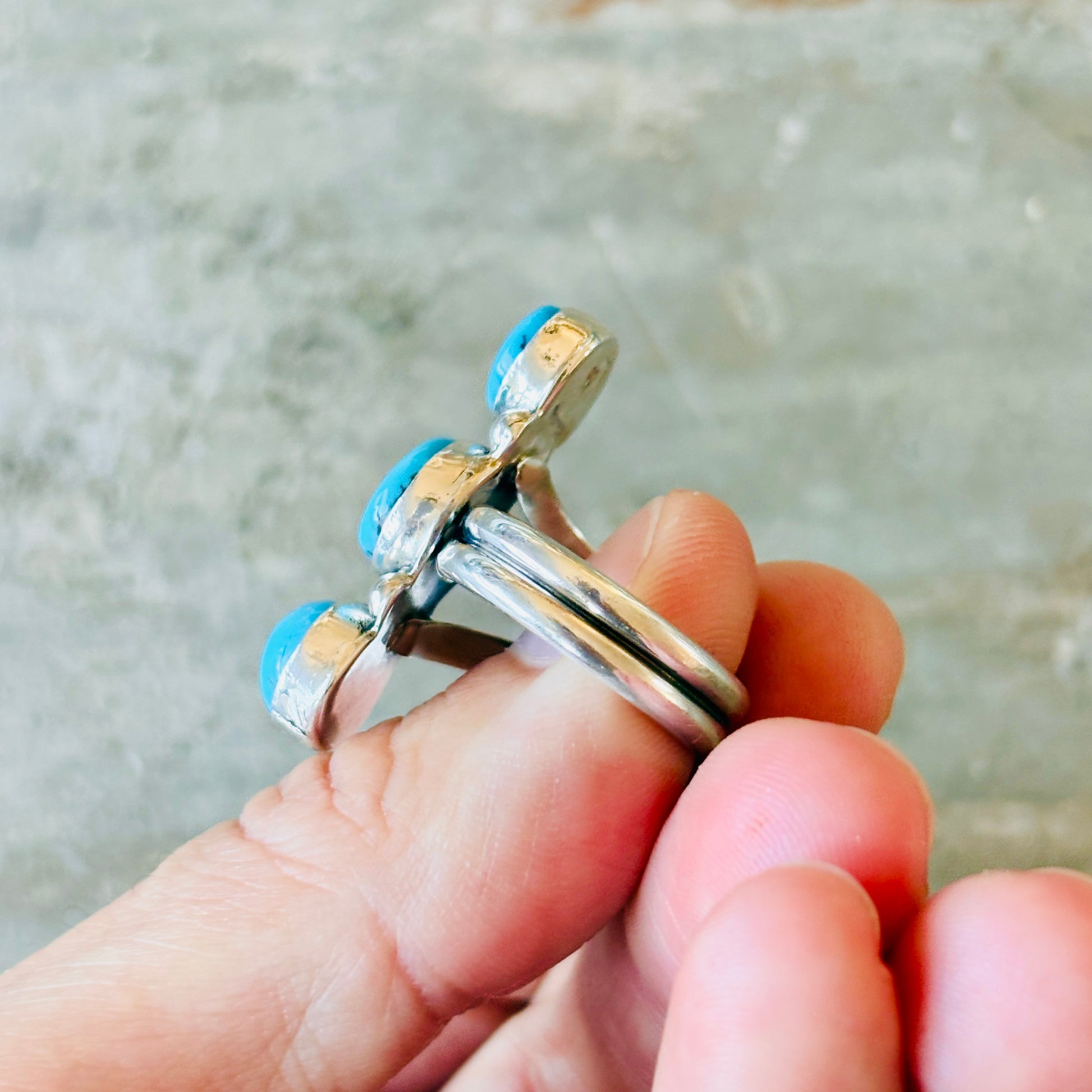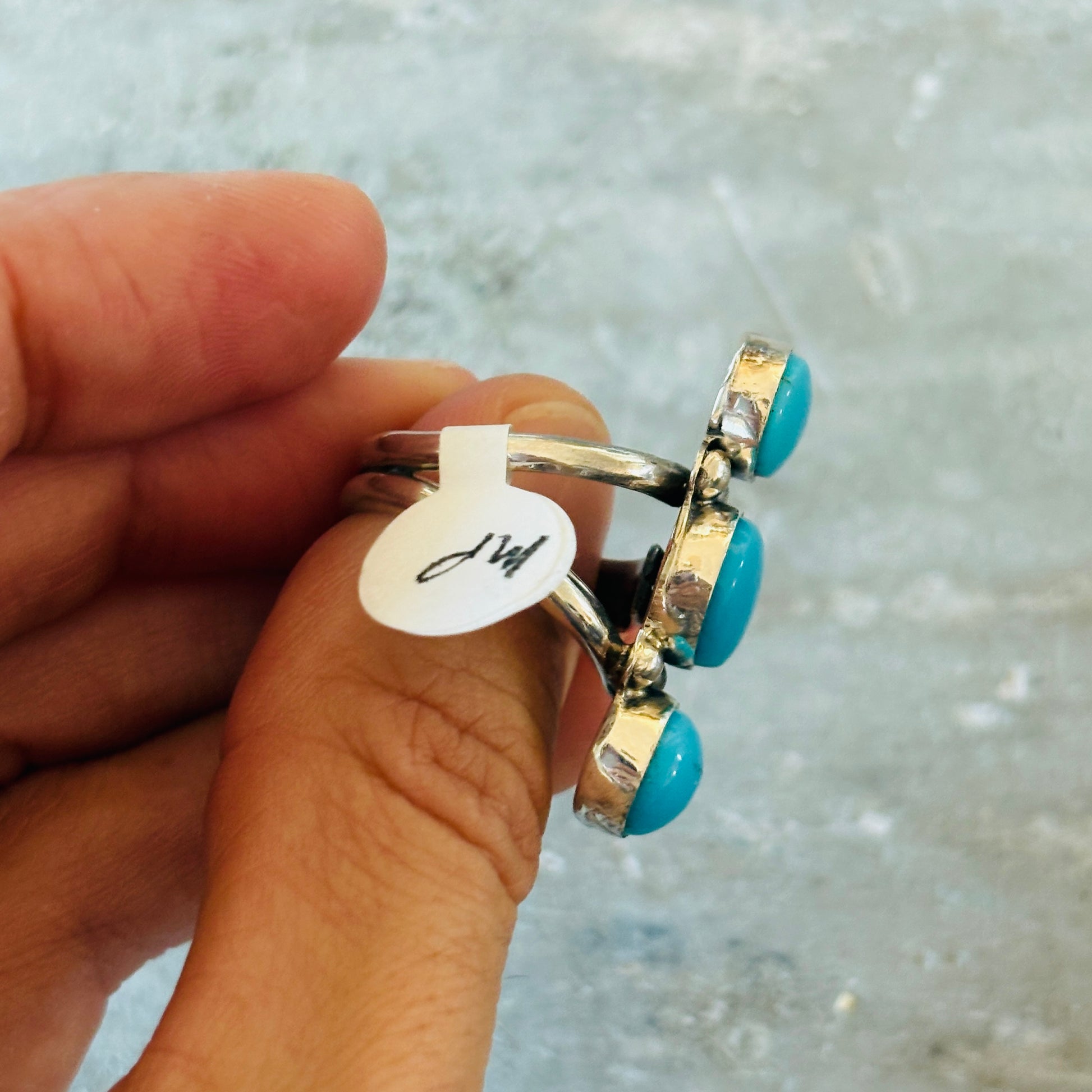 Navajo Mildred Parkhurst Sterling Silver & Blue Ridge Three Stone Turquoise Ring