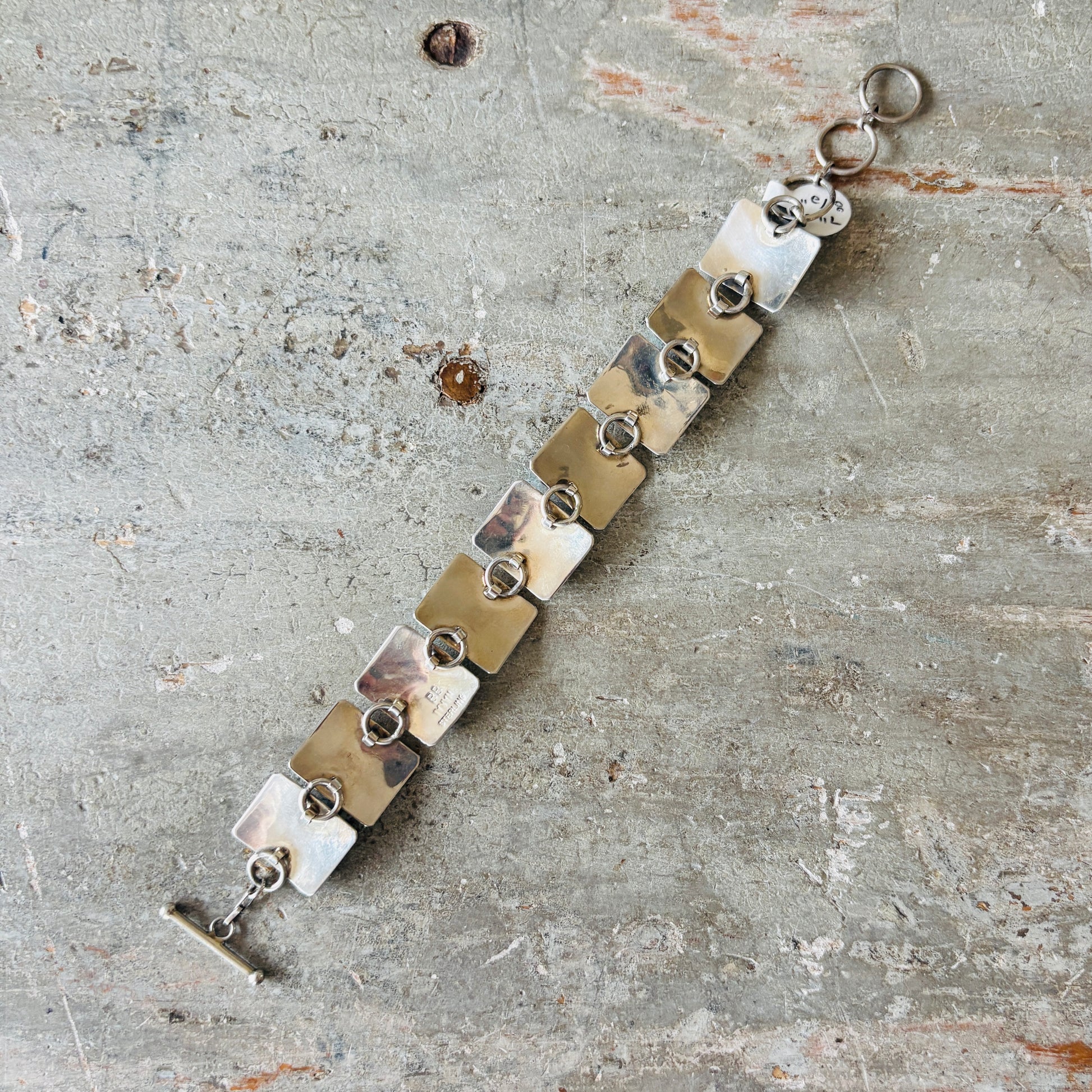 Navajo Nakai Bernice Bonney Sterling Silver & Kingman Turquoise Panel Bracelet