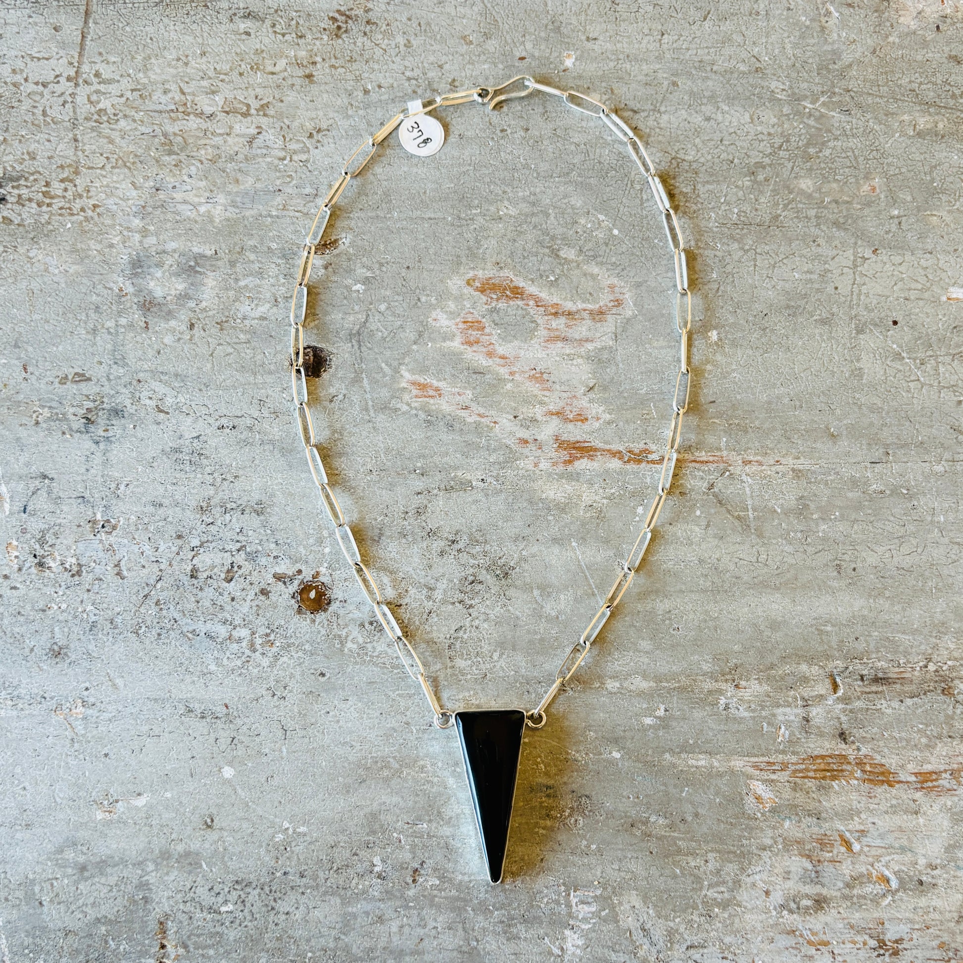 Navajo Mildred Parkhurst Sterling Silver & Black Onyx Triangle Pendant Necklace