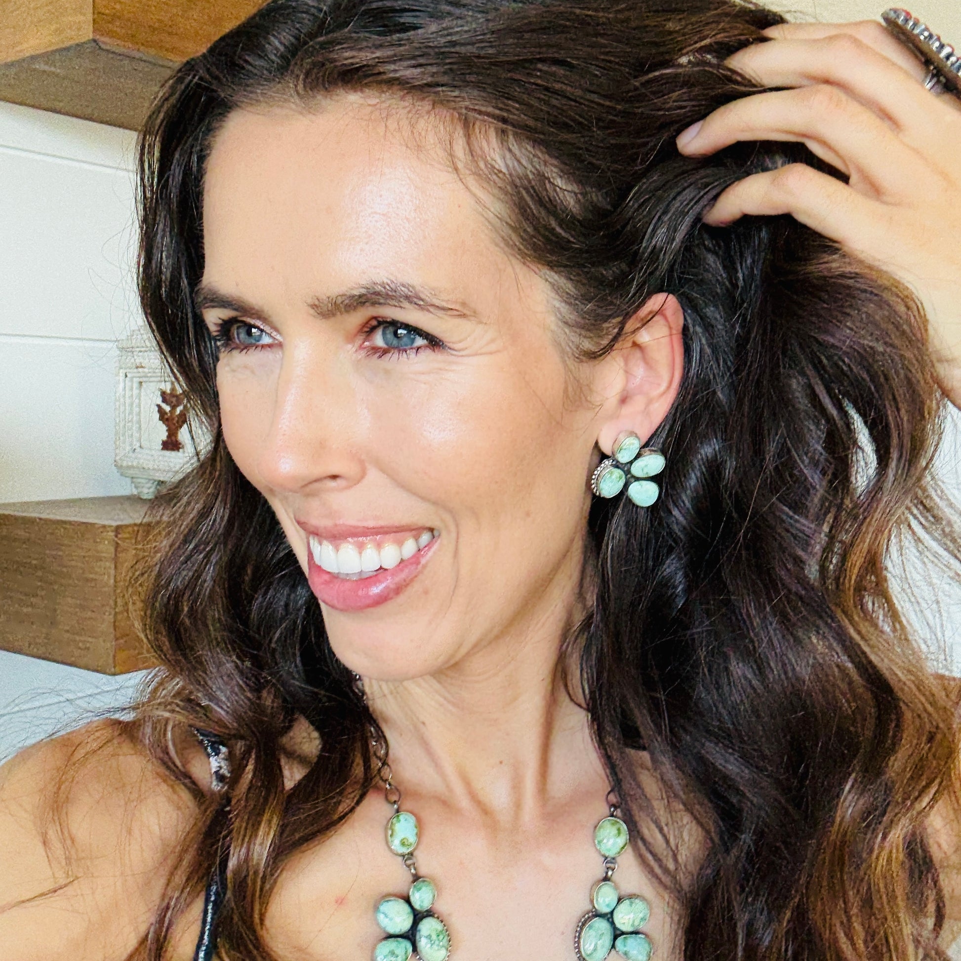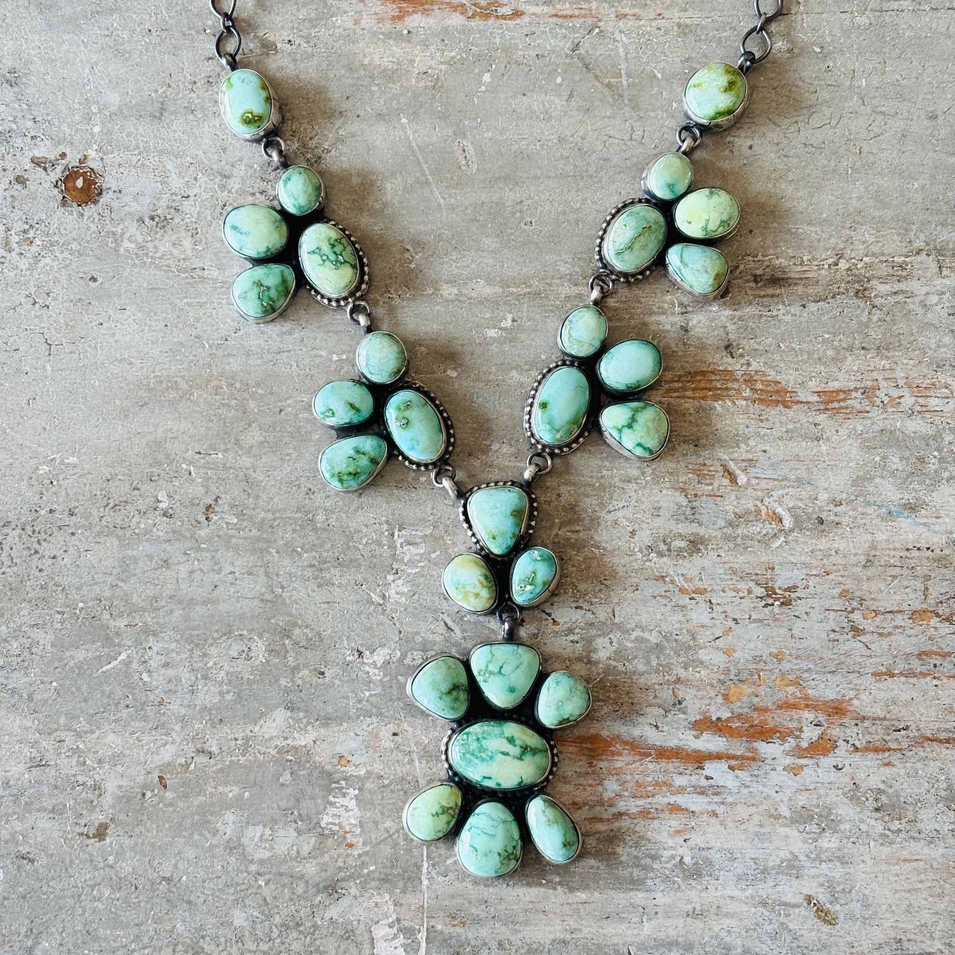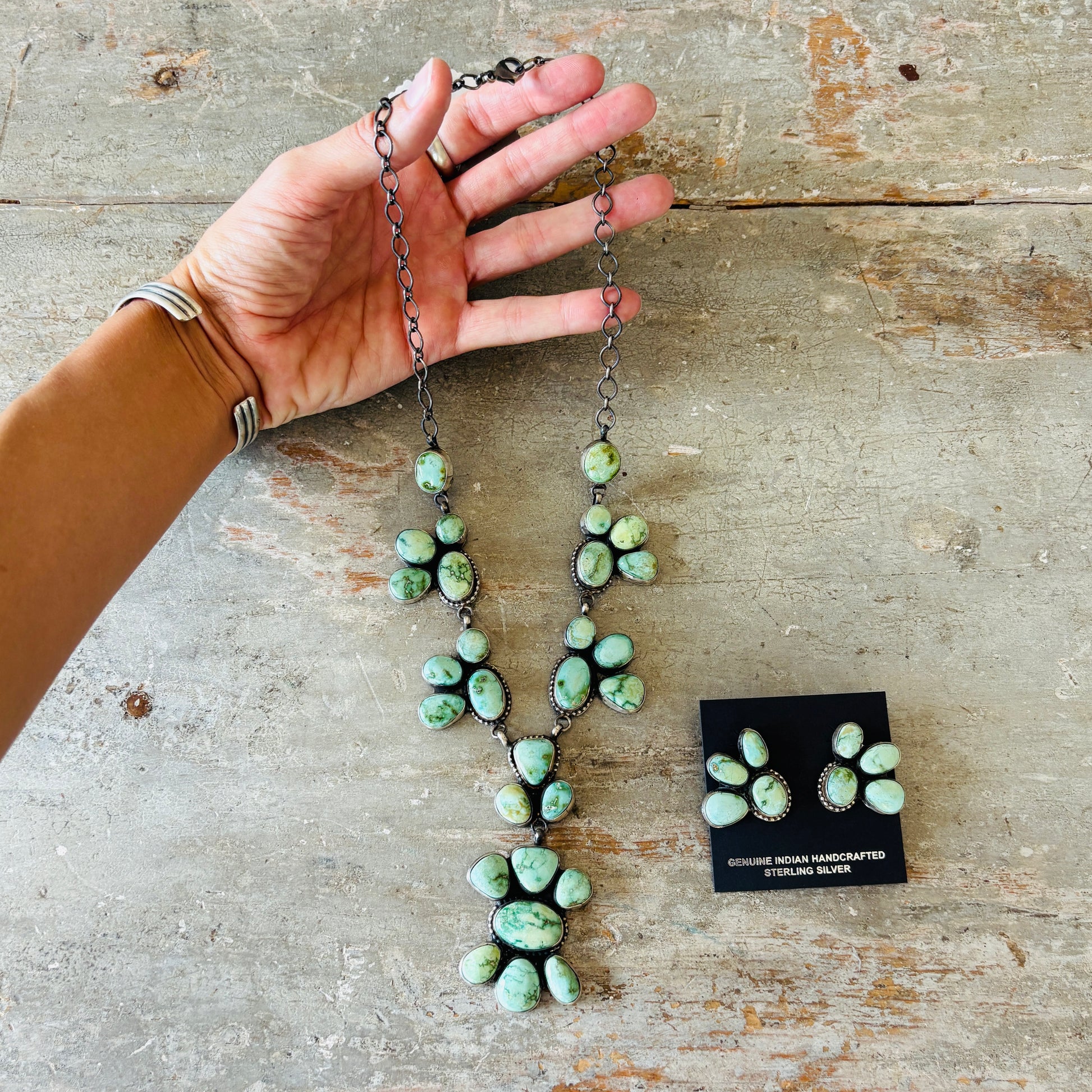 Navajo Pansy Johnson Sterling Silver & Carico Lake Turquoise Lariat Necklace Set