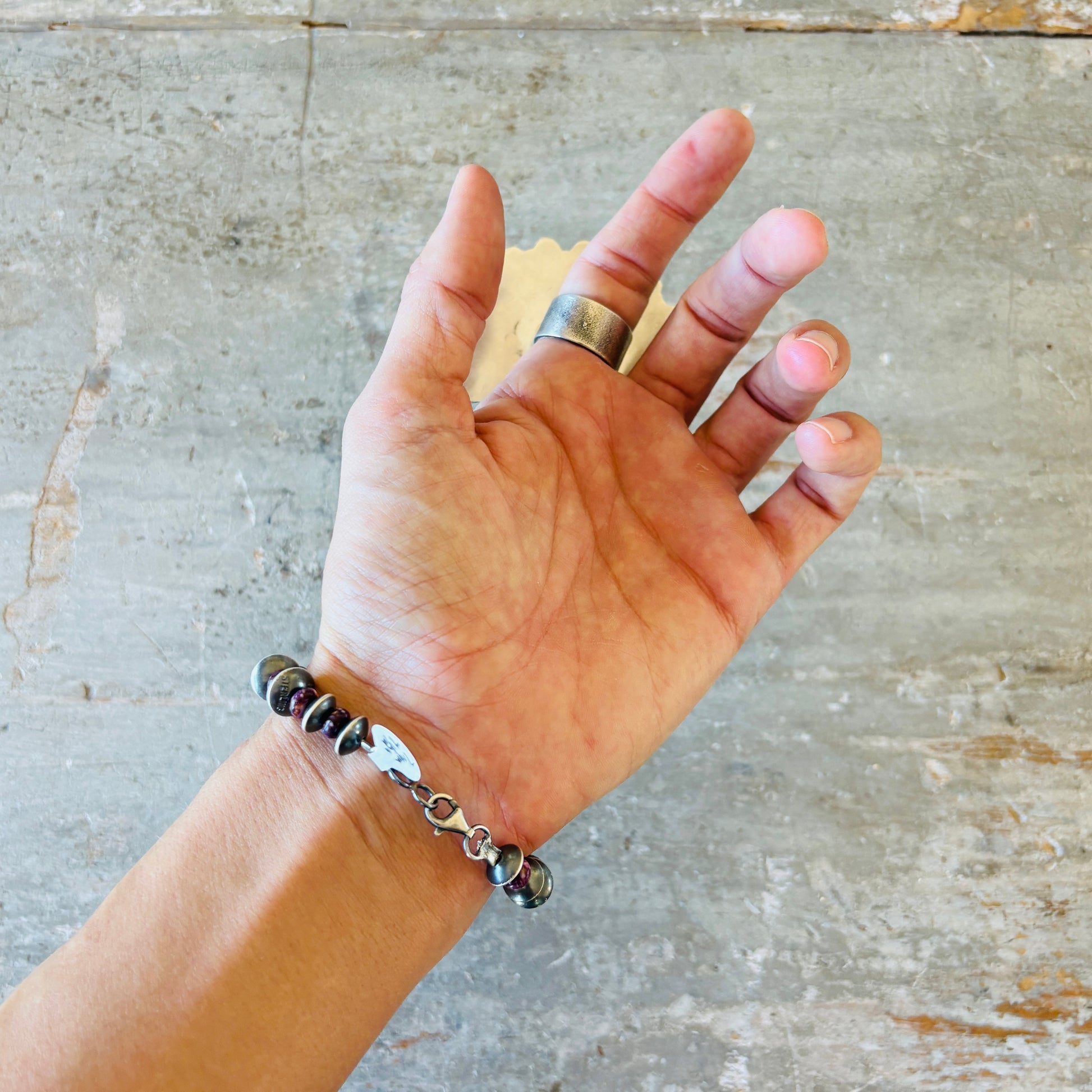 Navajo Preston Haley Sterling Silver & Purple Spiny Oyster 7mm Saucer Handmade Pearls Blossom Bracelet