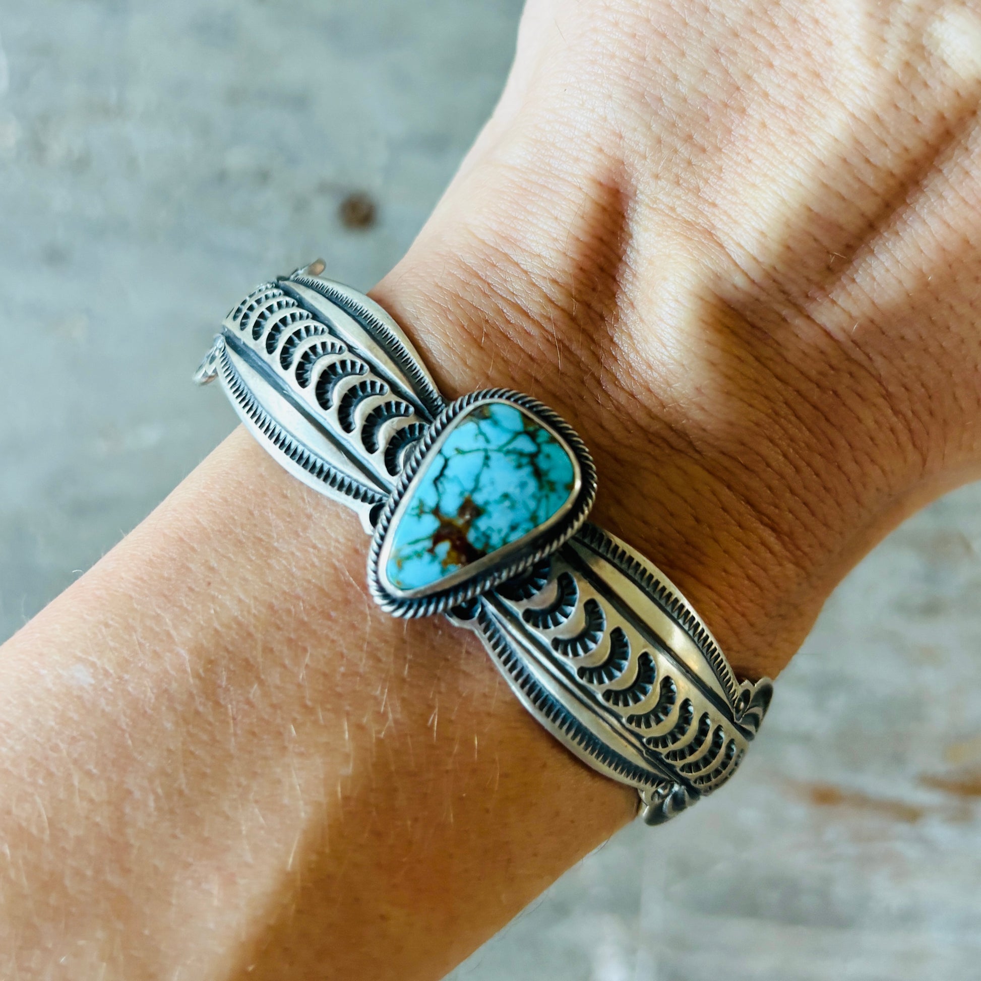 Navajo Randy Boyd Sterling Silver & Kingman Turquoise Cuff