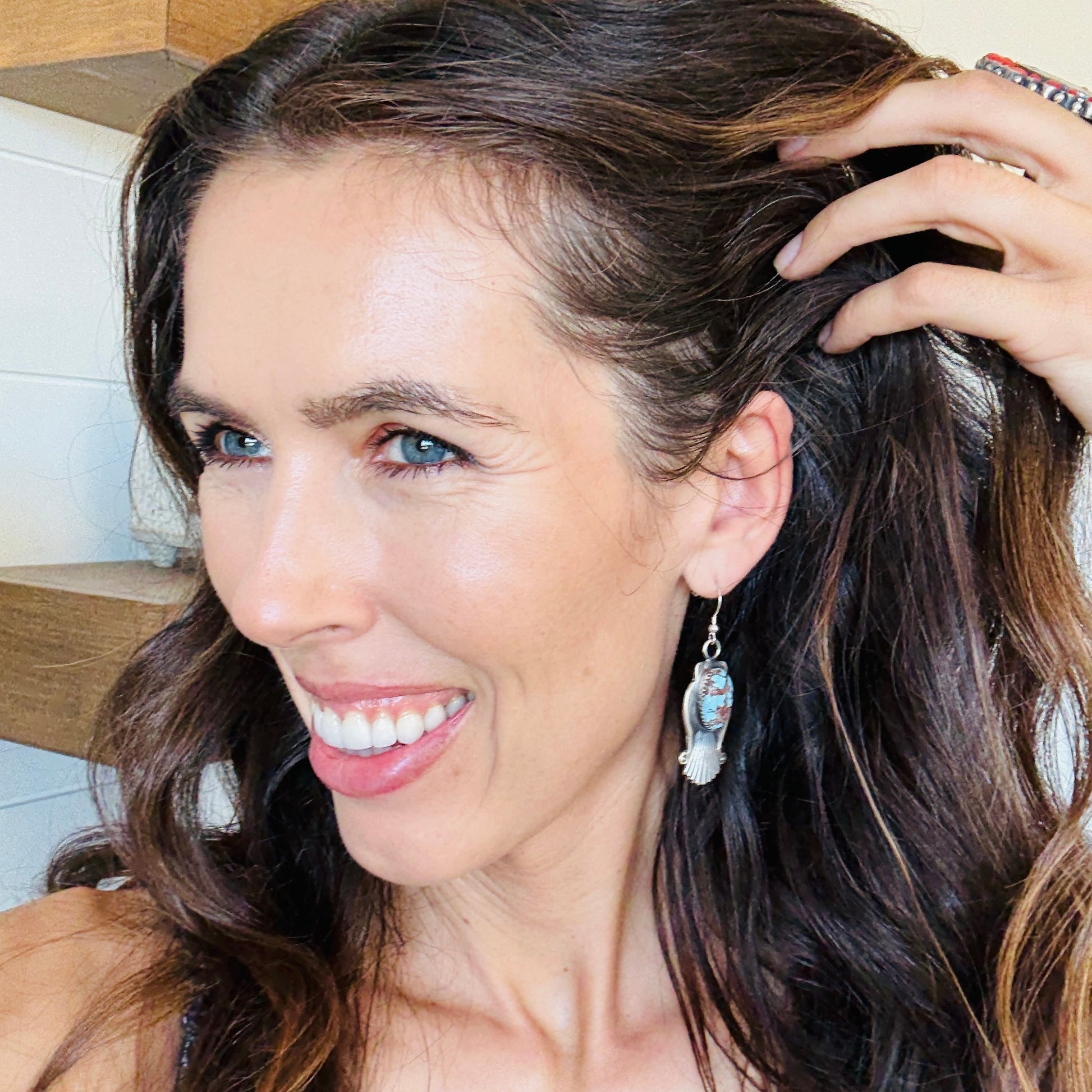 Navajo Rita Begay Sterling Silver & Golden Hills Turquoise Earrings