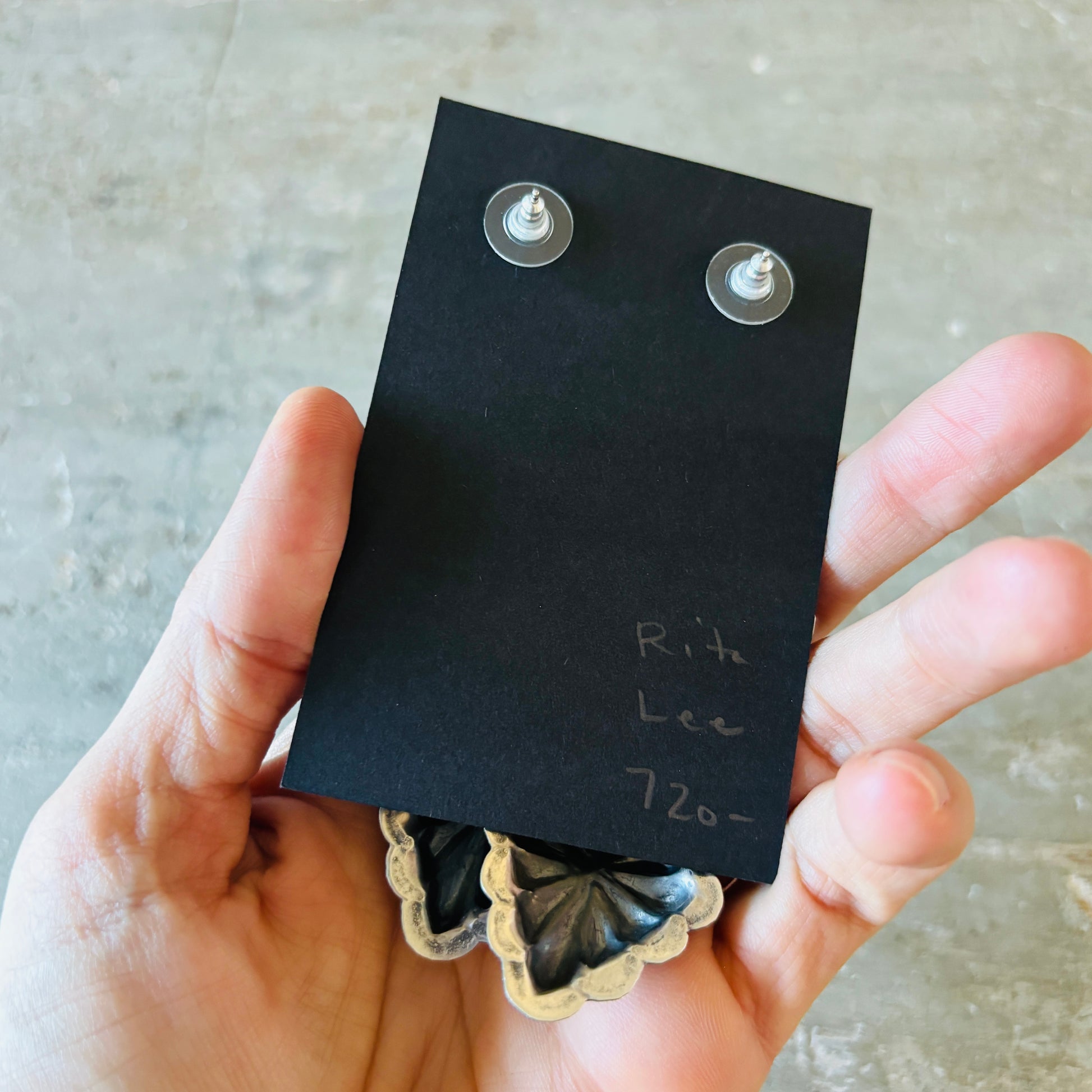Navajo Rita Lee Sterling Silver & Kingman Turquoise Concho Earrings