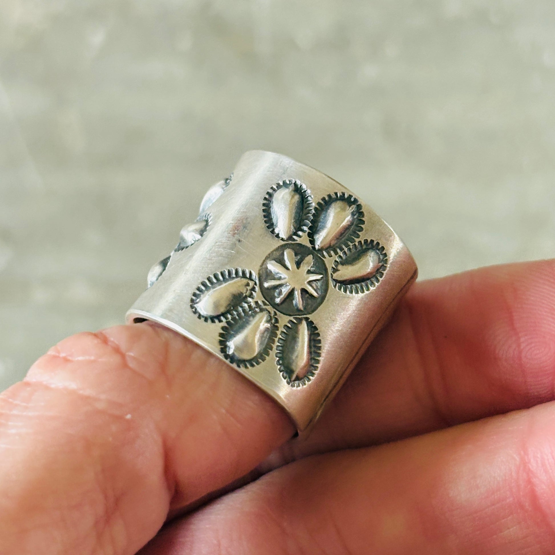 Navajo Robert Johnson Sterling Silver Floral Repousse Ring