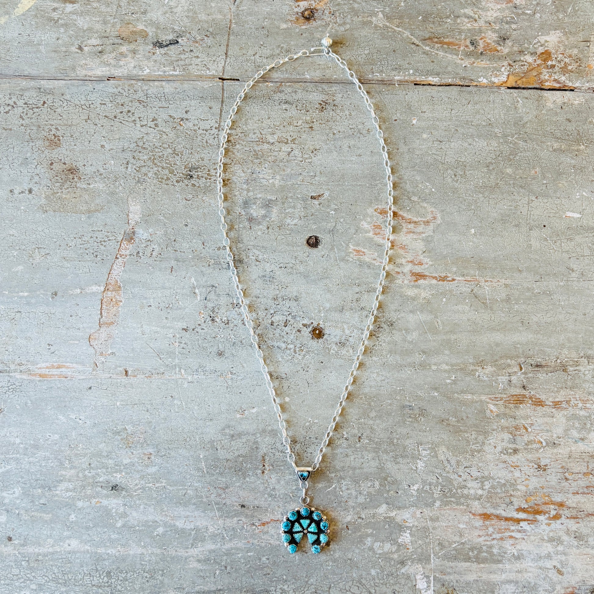 Navajo Signed Sterling Silver & Mixed Turquoise Naja Necklace