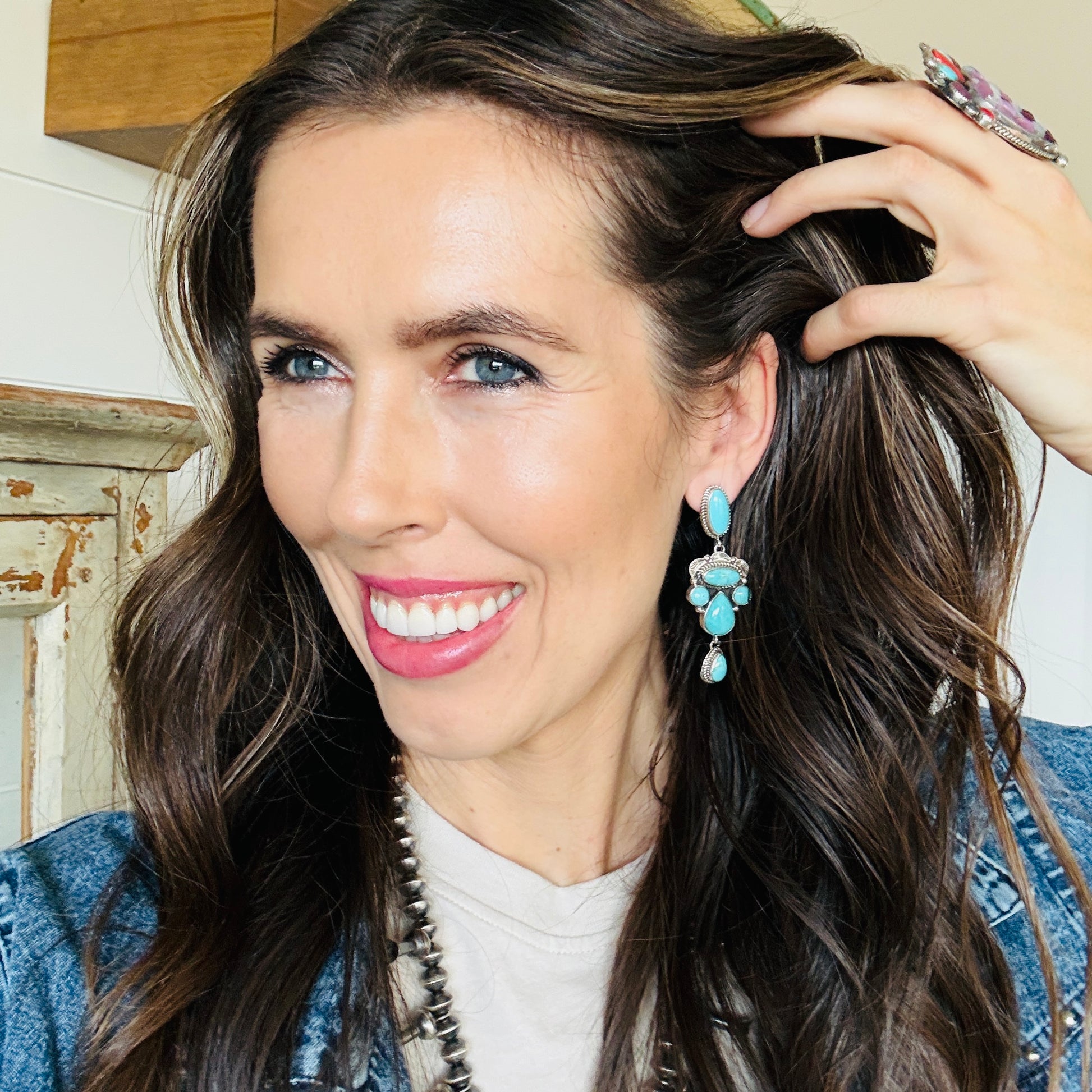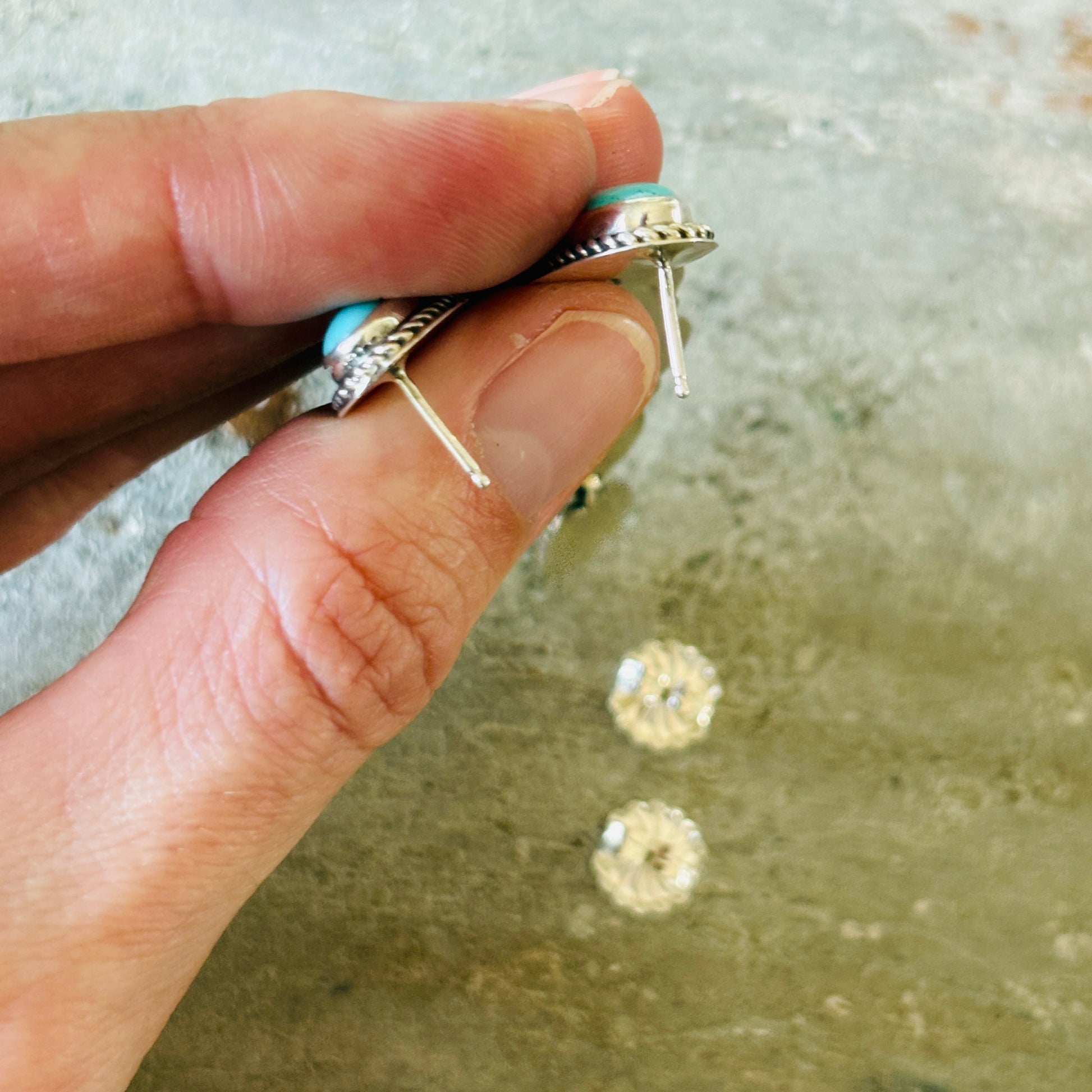Navajo Signed Sterling Silver & Sonoran Turquoise Statement Earrings