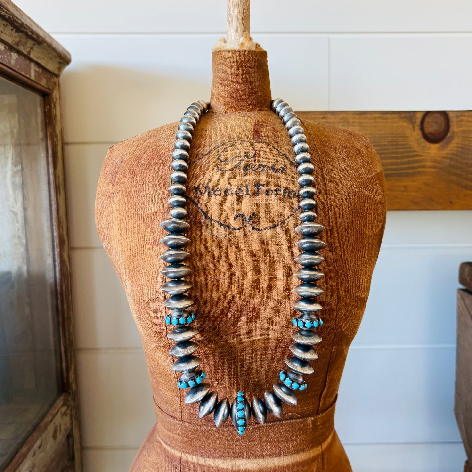 Navajo Sophia Becenti Sterling Silver & Sleeping Beauty Turquoise Graduated Pearls Necklace