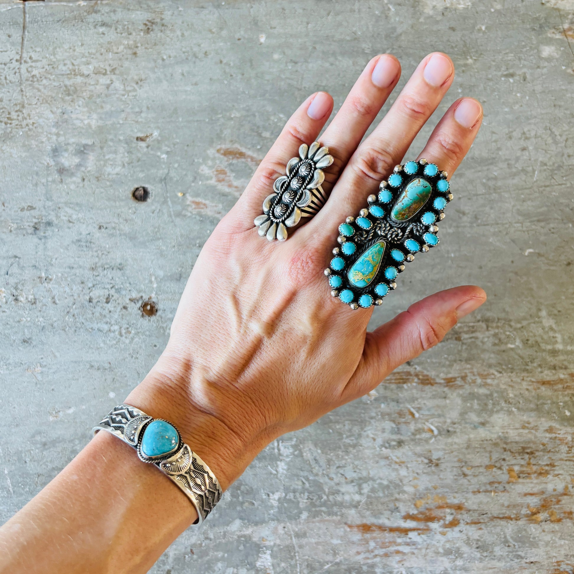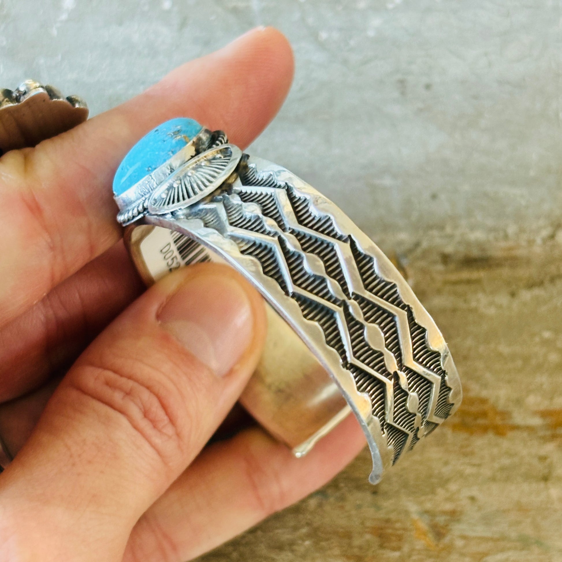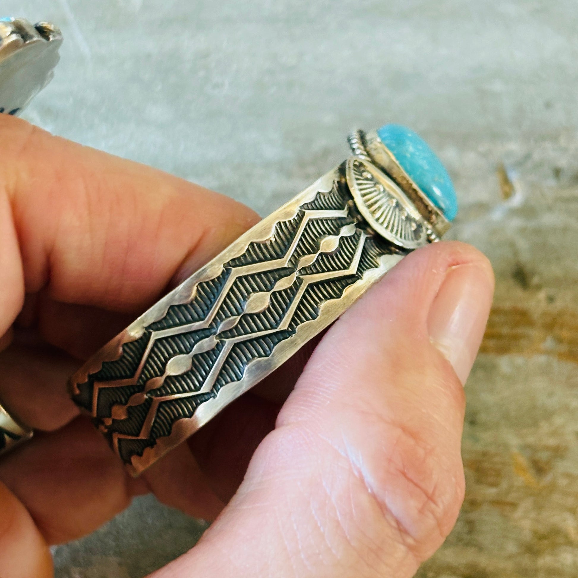 Navajo Sunshine Reeves Sterling Silver & Persian Turquoise Stacker Cuff