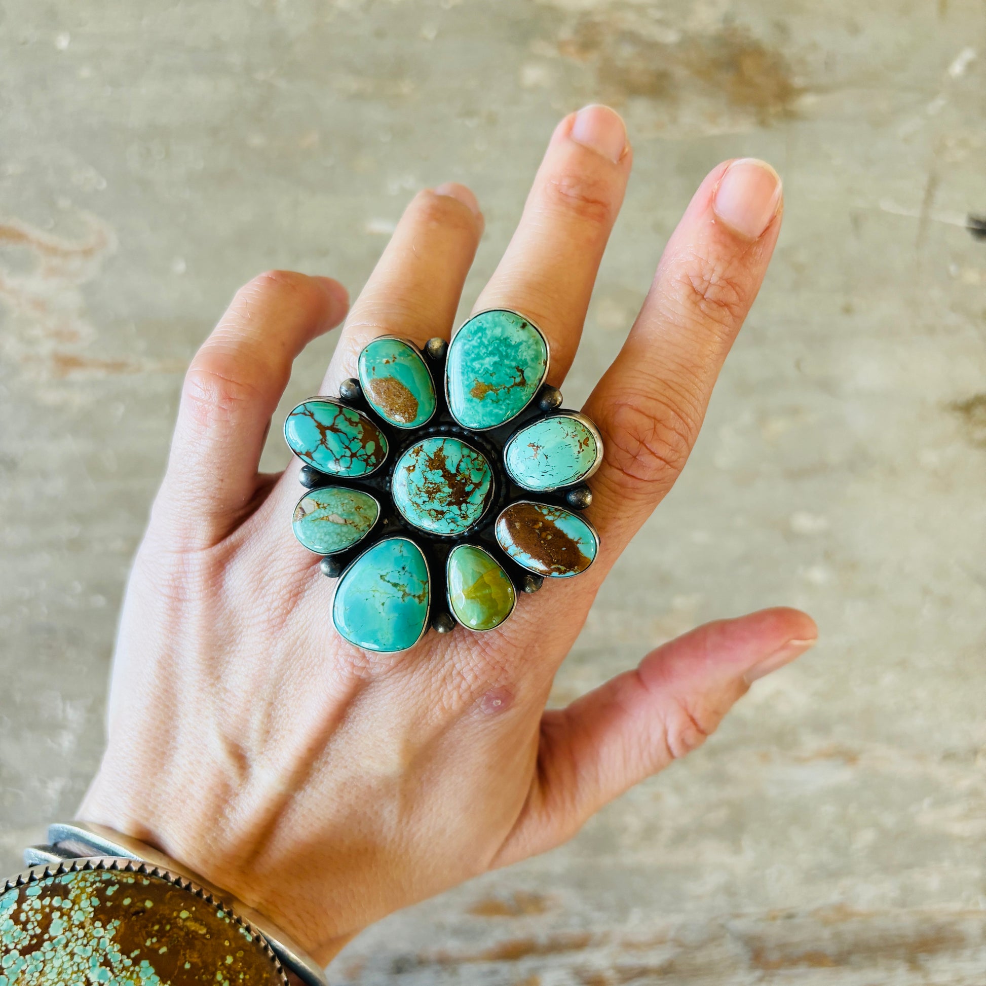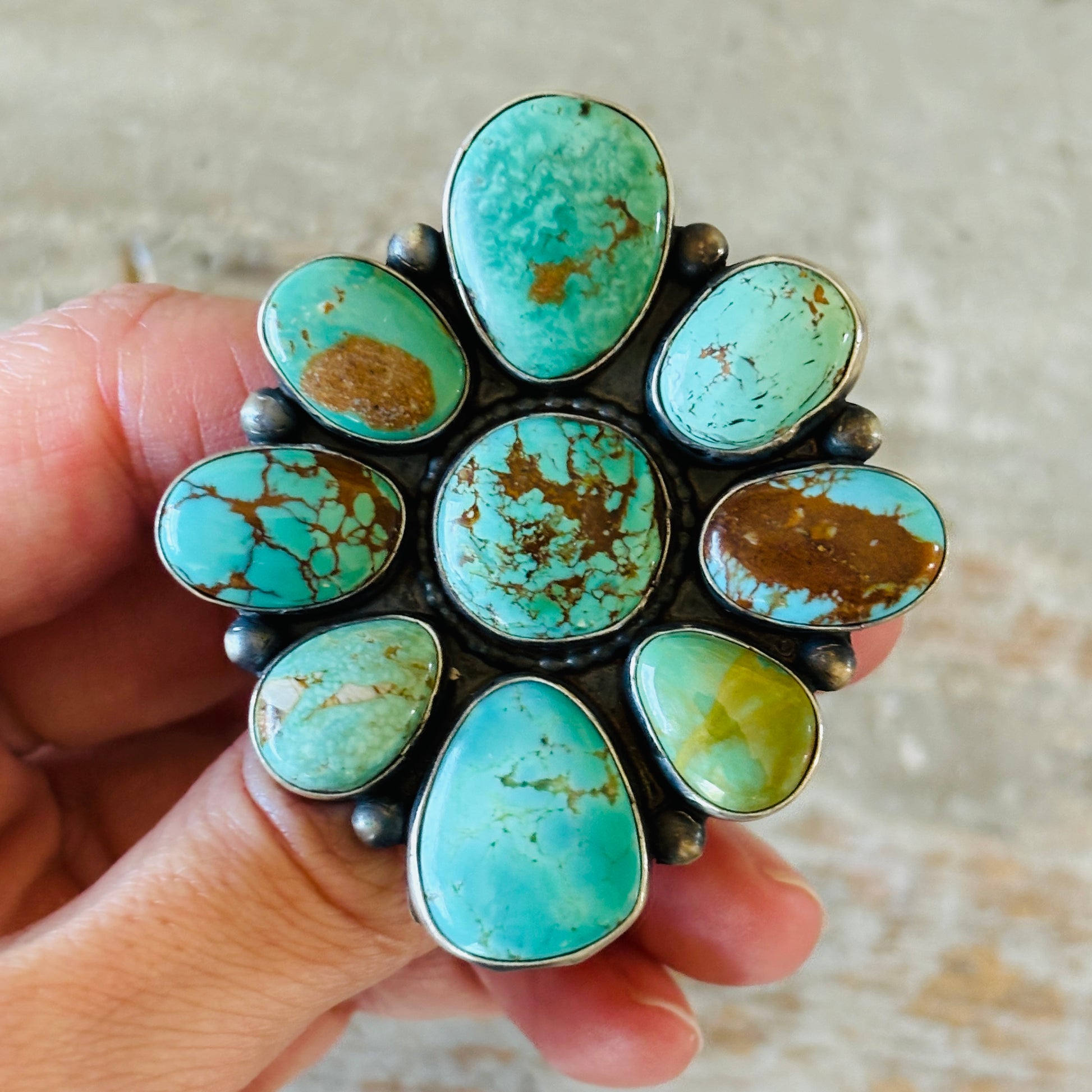 Navajo Taliah Benally Sterling Silver & Mixed Turquoise Cluster Ring