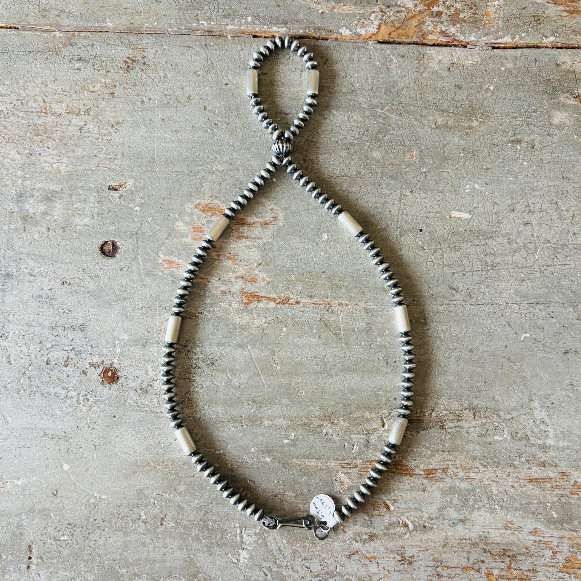 Navajo Tonisha Haley Sterling Silver 6.5mm Handmade Pearls Jacla Necklace
