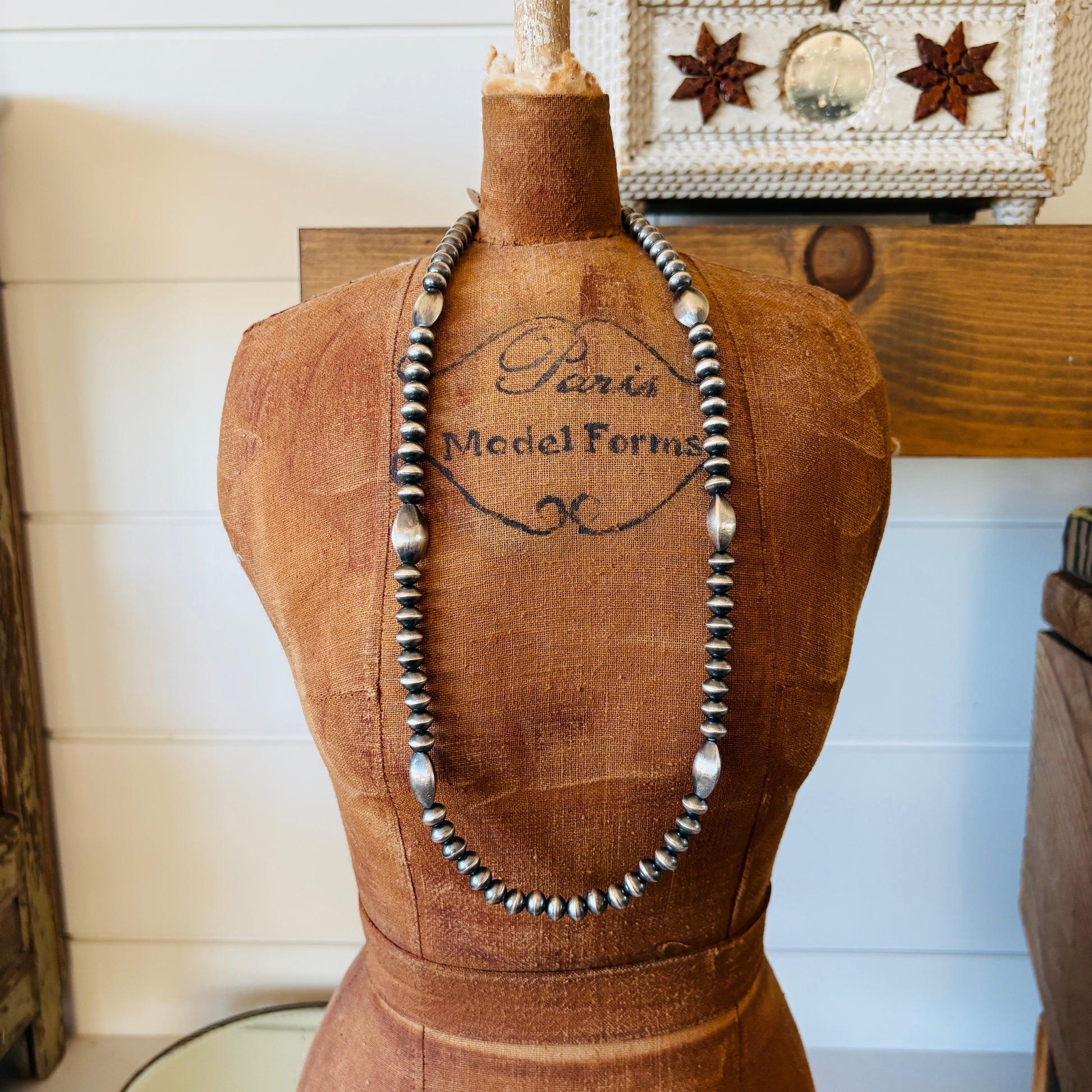 Navajo Tonisha Haley Sterling Silver 6mm Round - Melon Beads Handmade Pearls Necklace