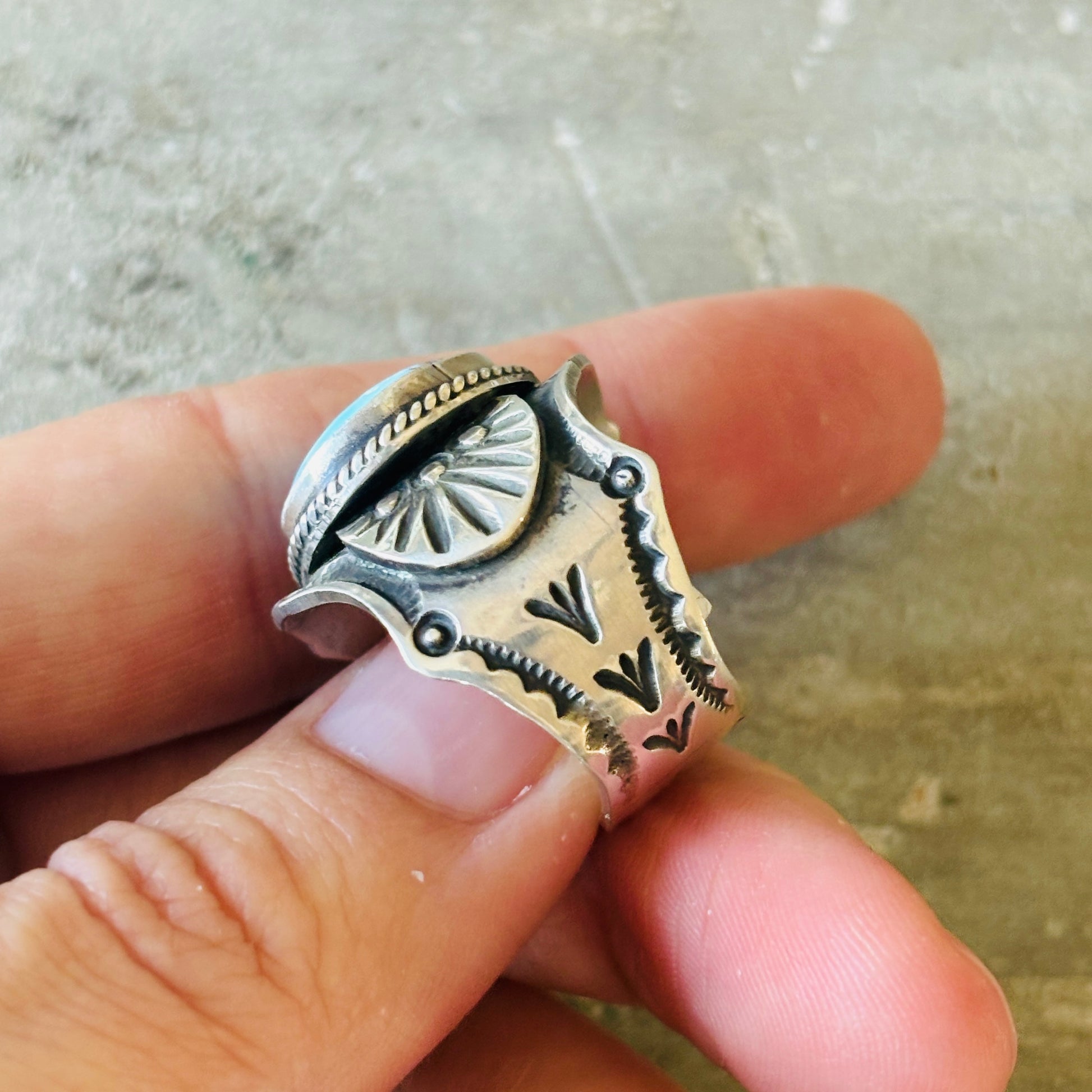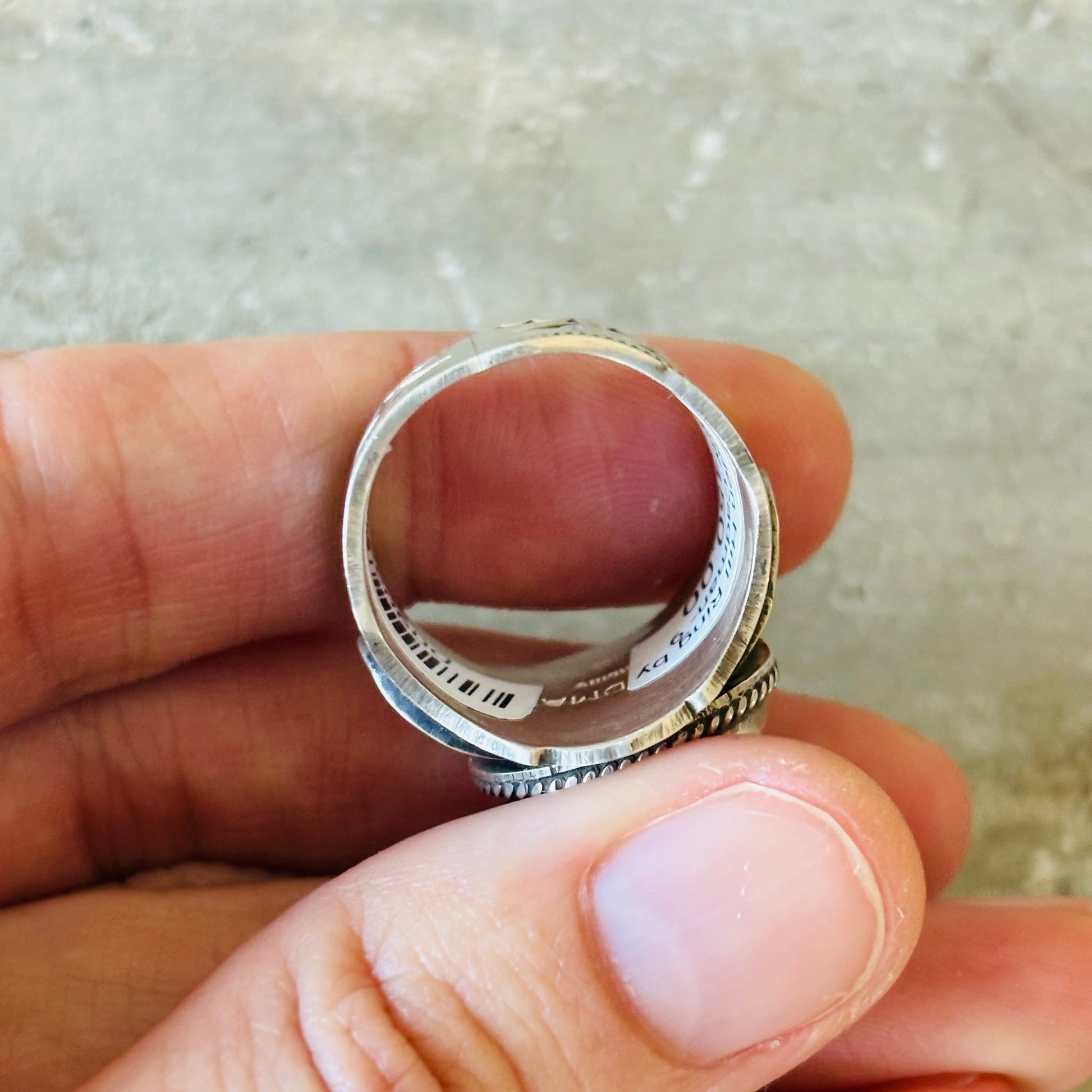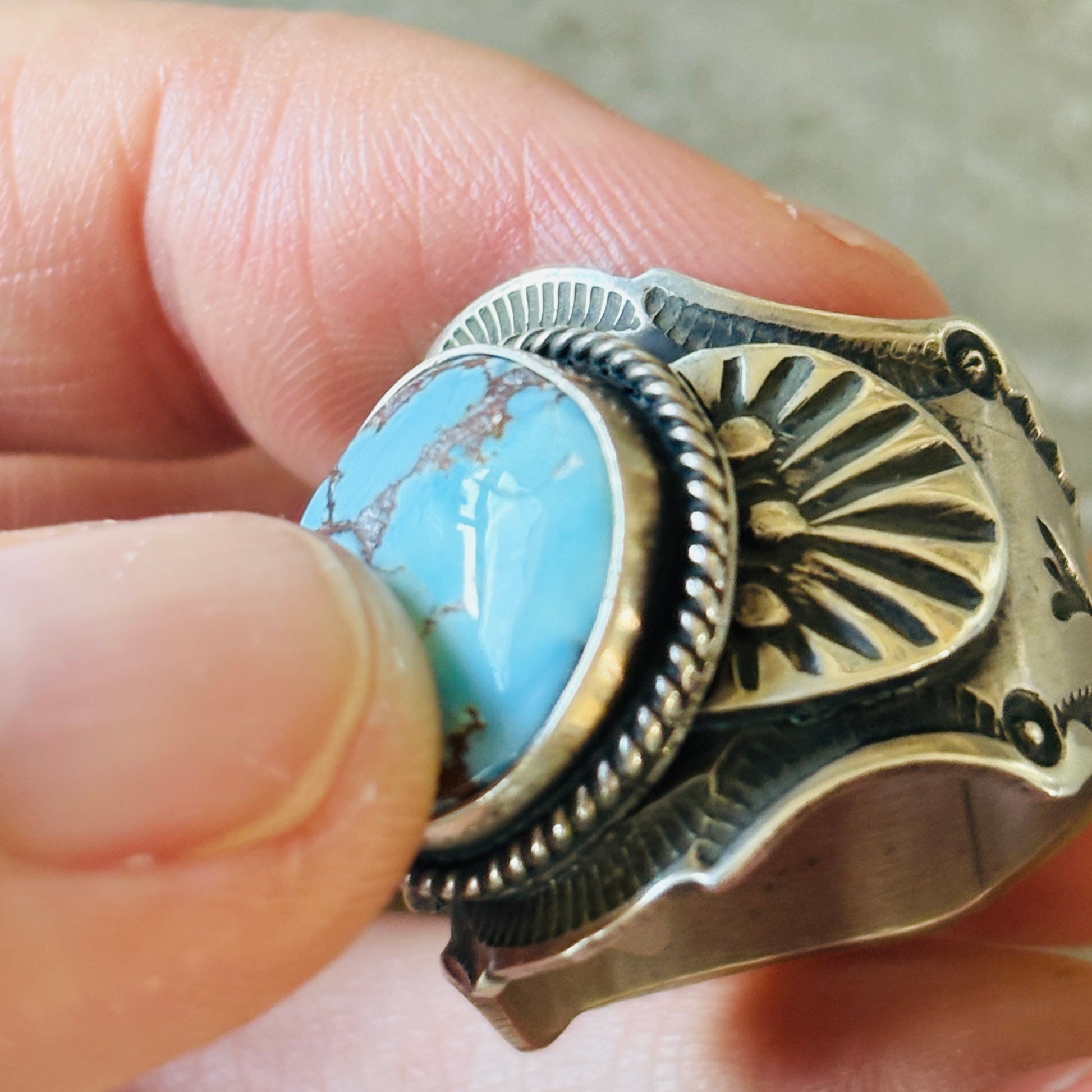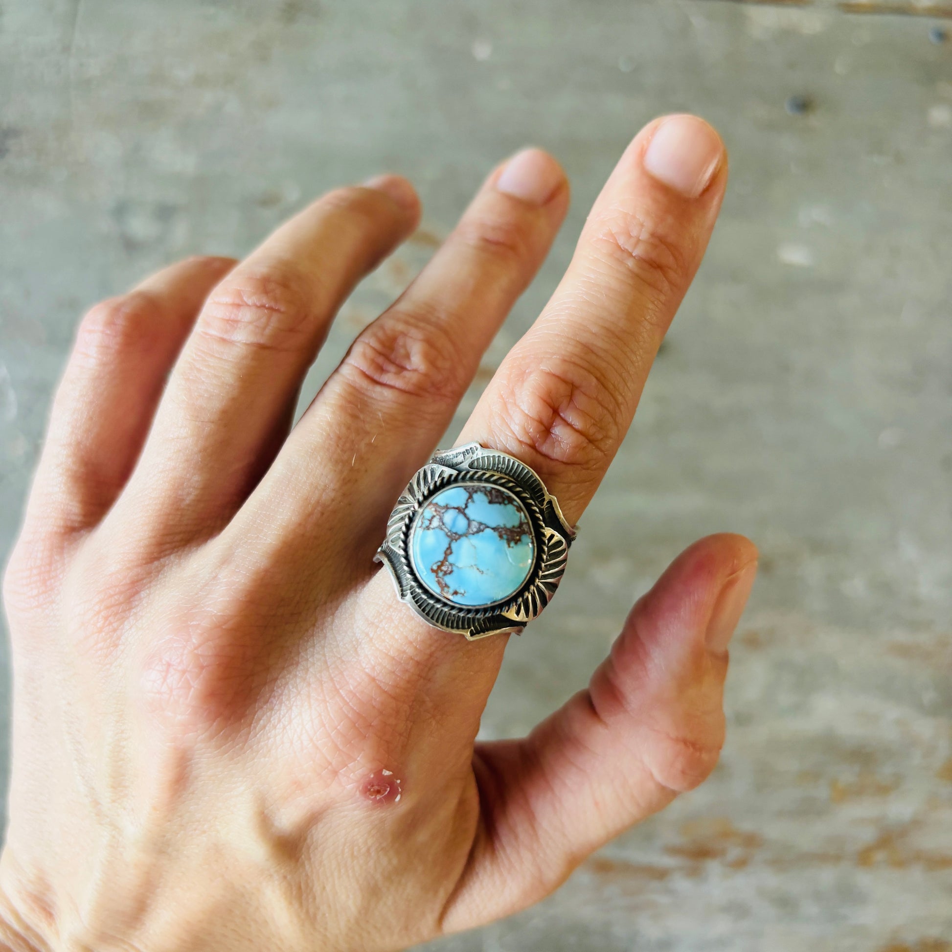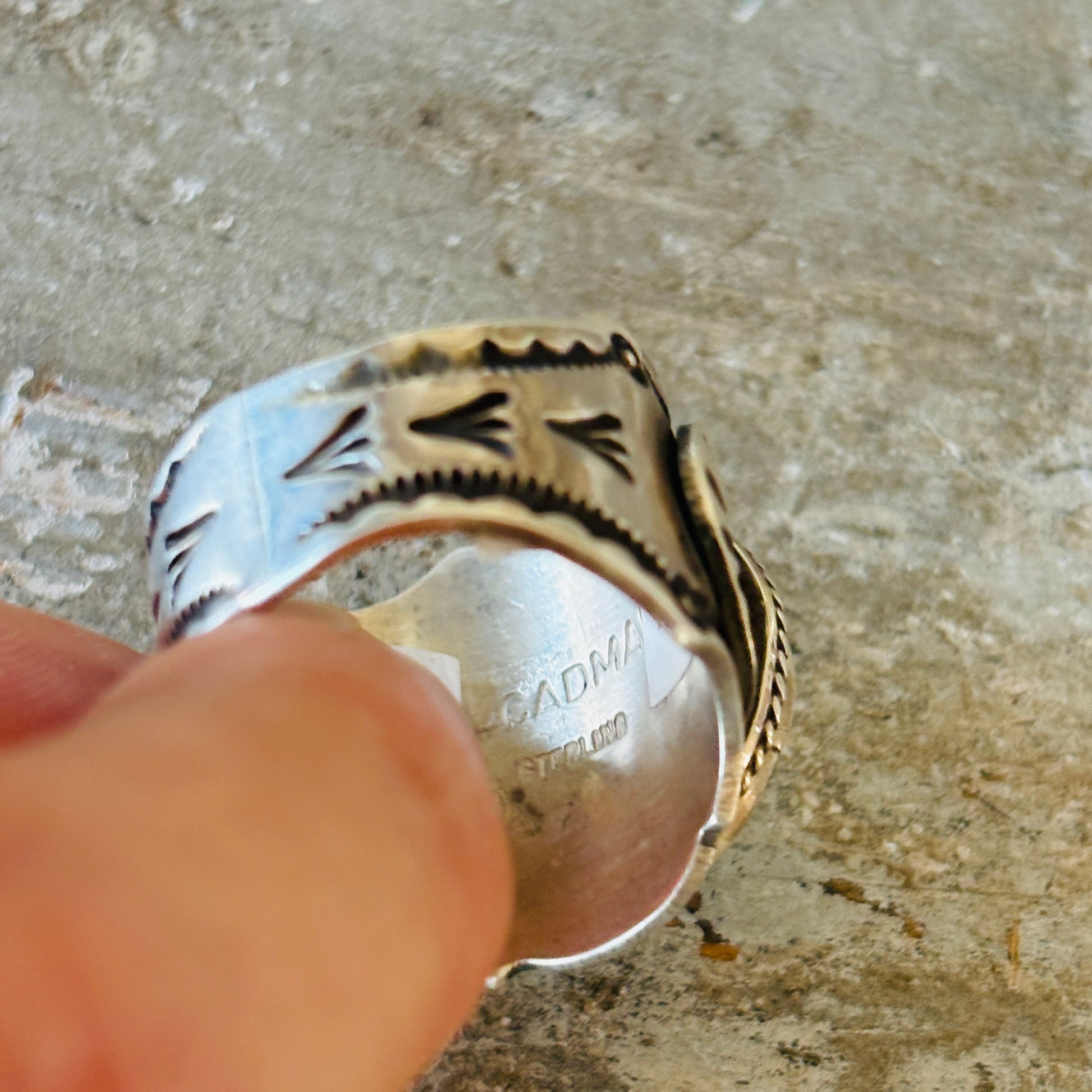 New Navajo Andy Cadman Sterling Silver & Golden Hills Ring! Stamped STERLING and signed A. CADMAN! Slight scratch on the stone! SIZE: 9! Retail $350 ➡️ $225