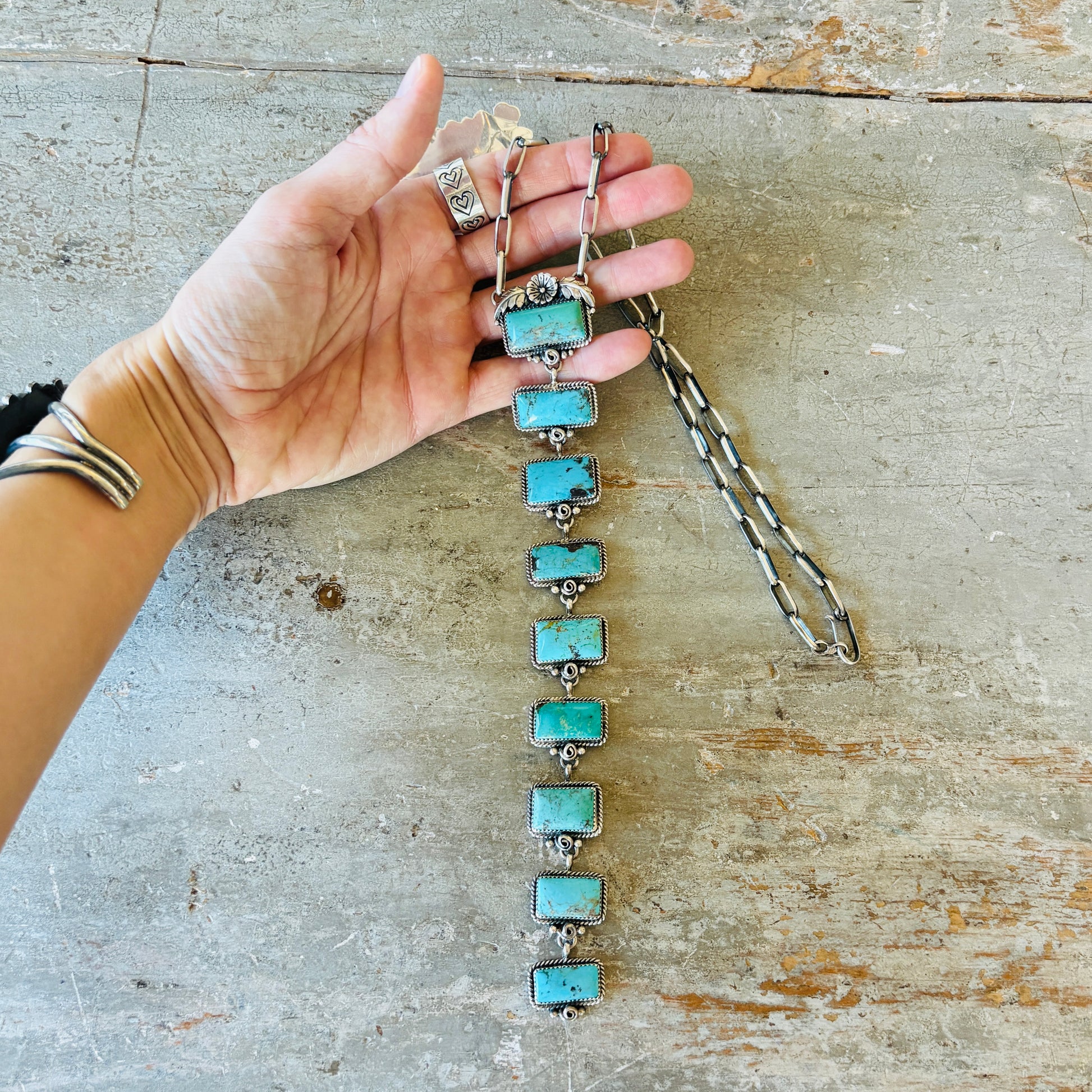 New Navajo Brenda Jimenez Sterling Silver & Kingman Turquoise Statement Lariat! Stamped Sterling and signed B. JIMENEZ! 22” + 9 1/4” drop! Retail $2,499 ➡️ $1,650