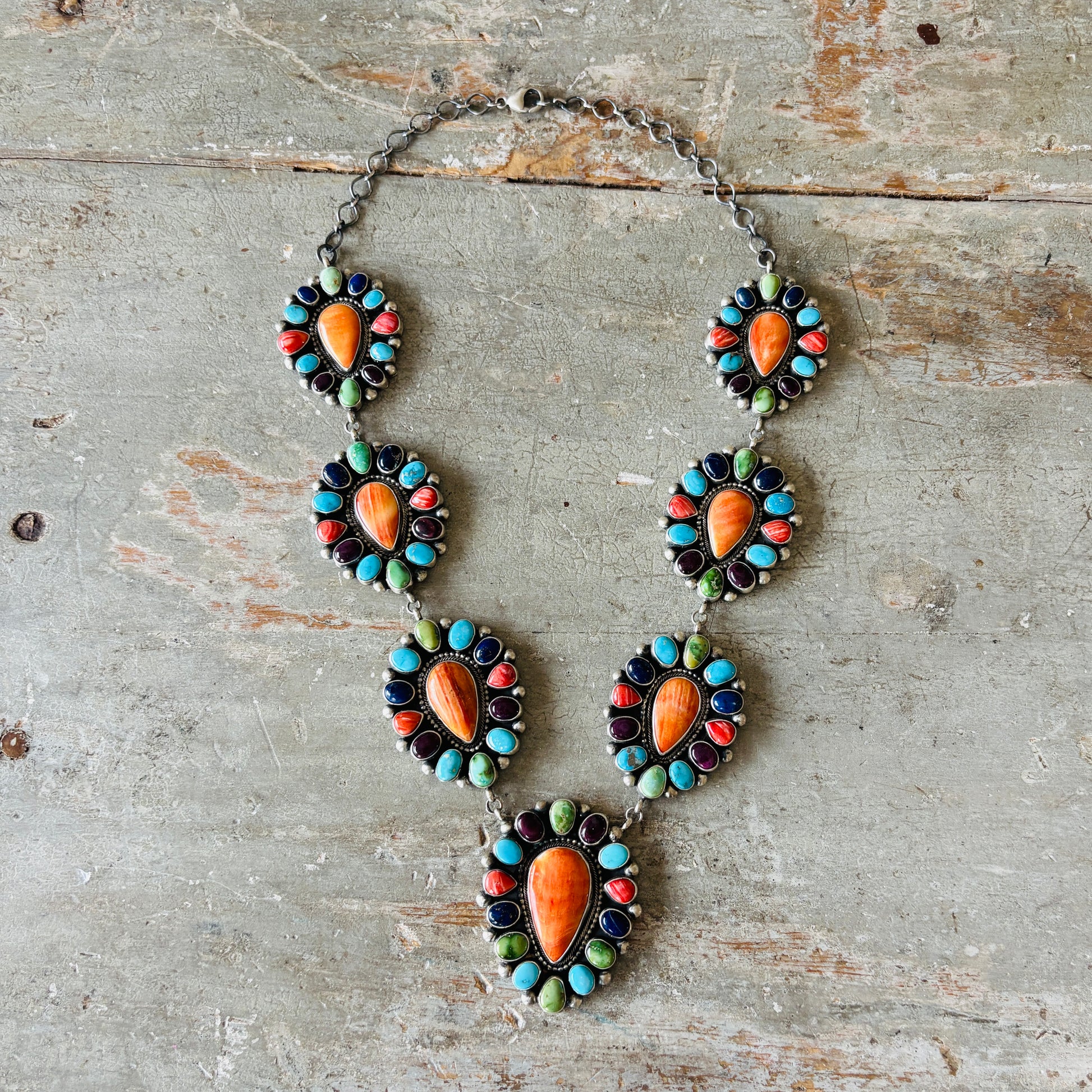 Navajo Taliah Benally Sterling Silver Multi Stone Cluster Necklace