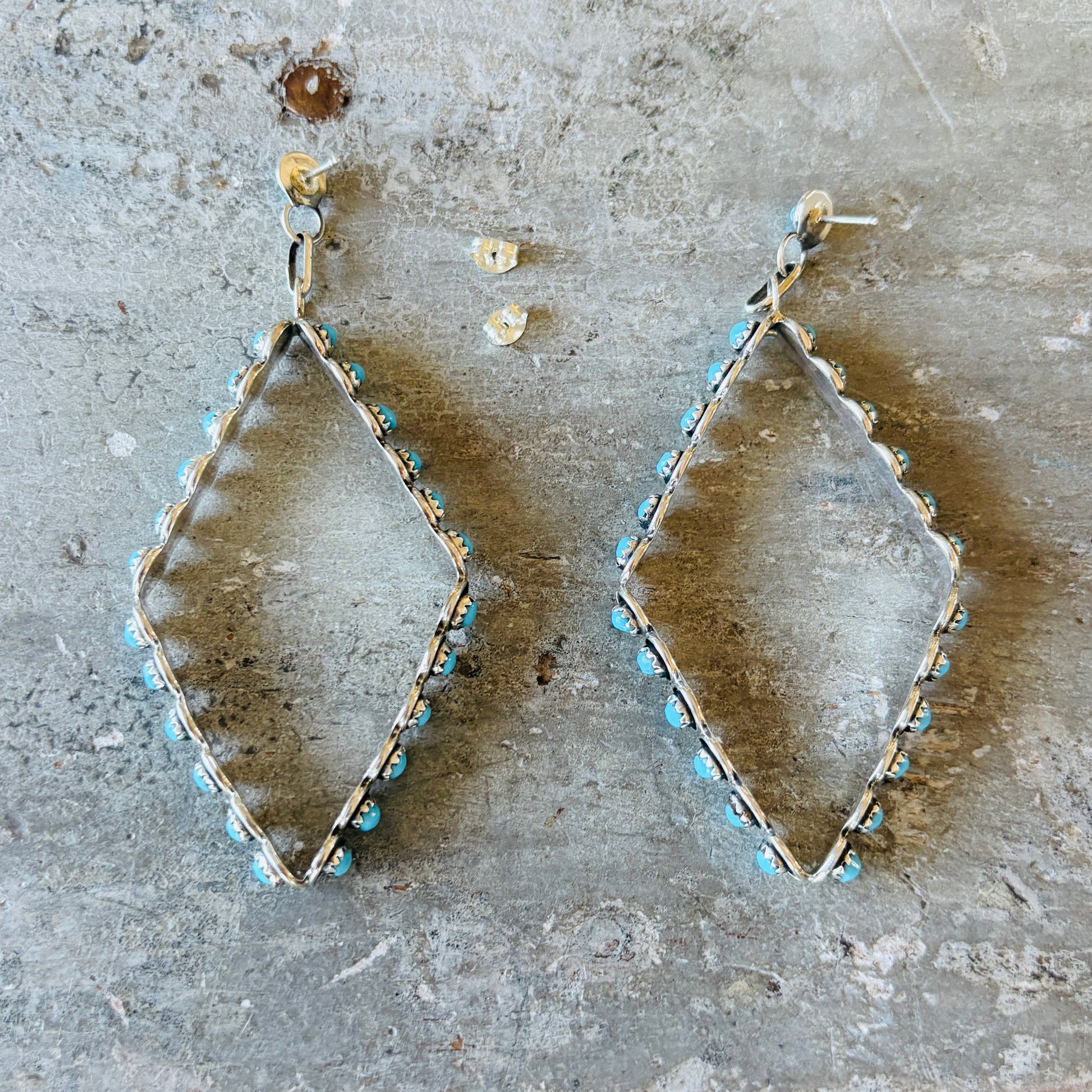 Zuni Iva Booqua Sterling Silver & Turquoise Petit Point Diamond Earrings